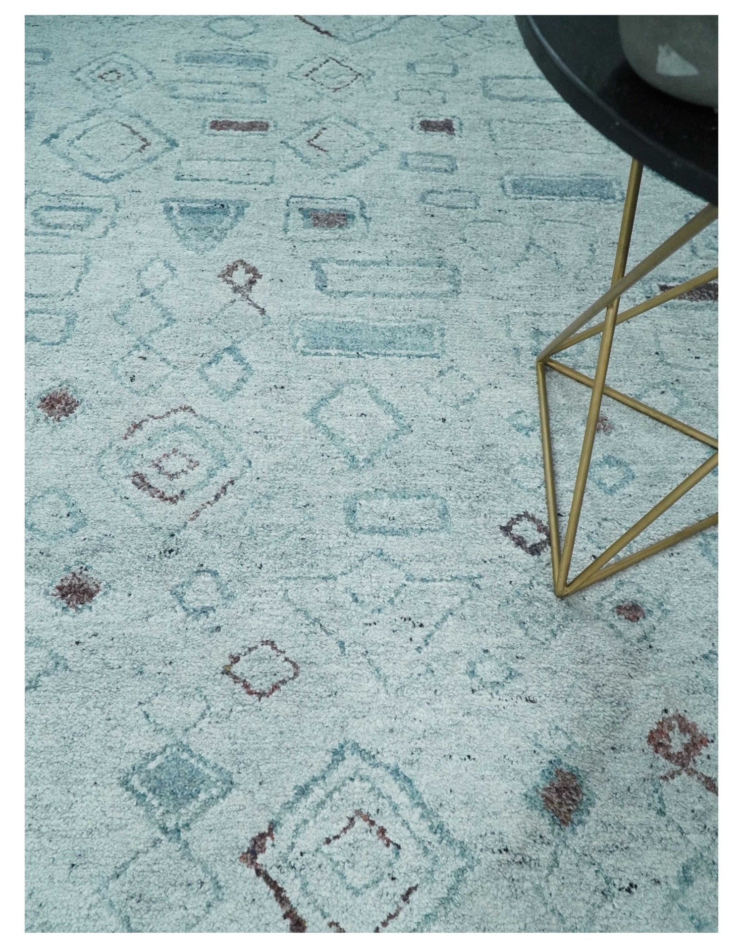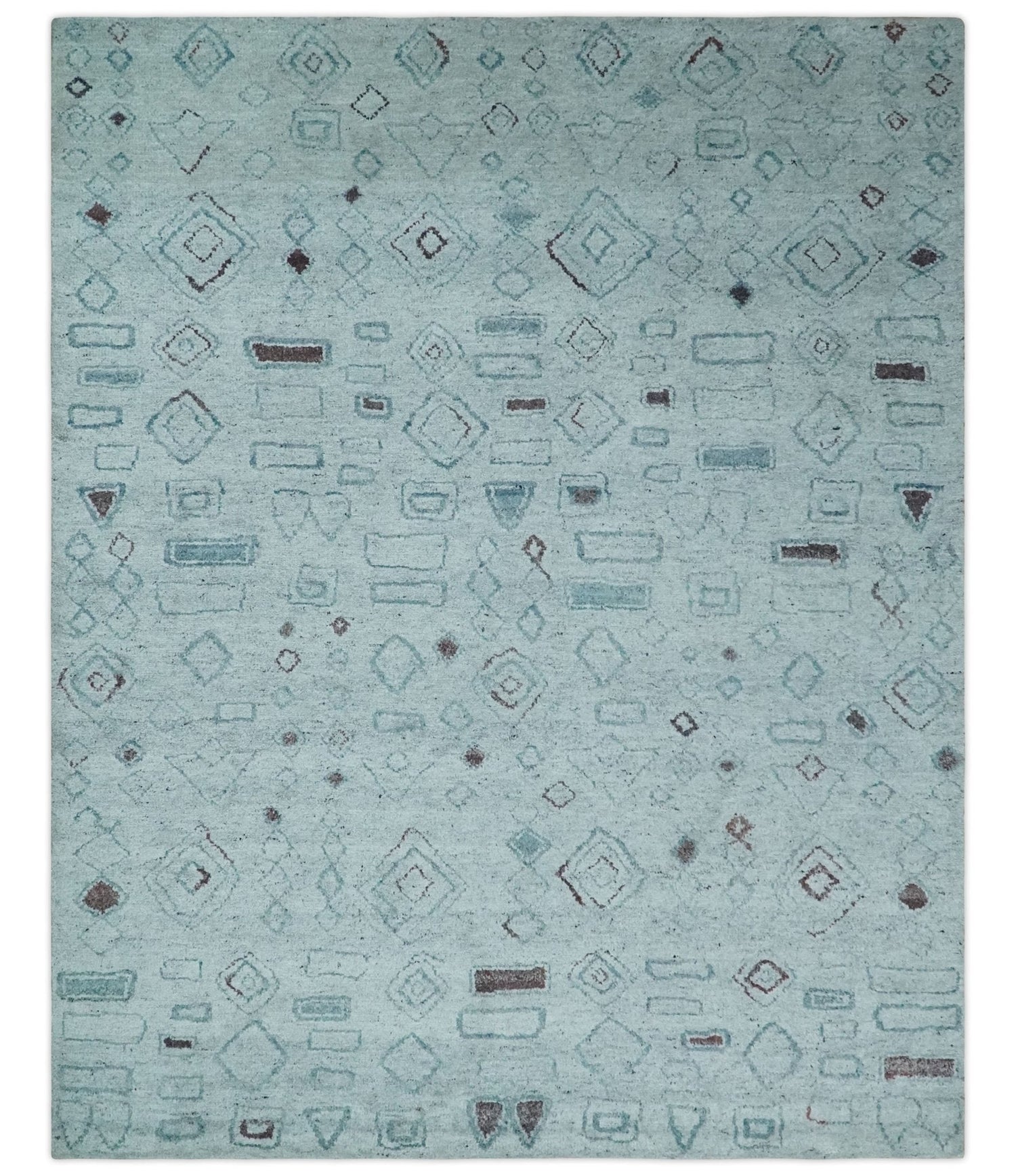 8x10 Gray and Silver Geometrical Pattern Handmade Wool Area Rug