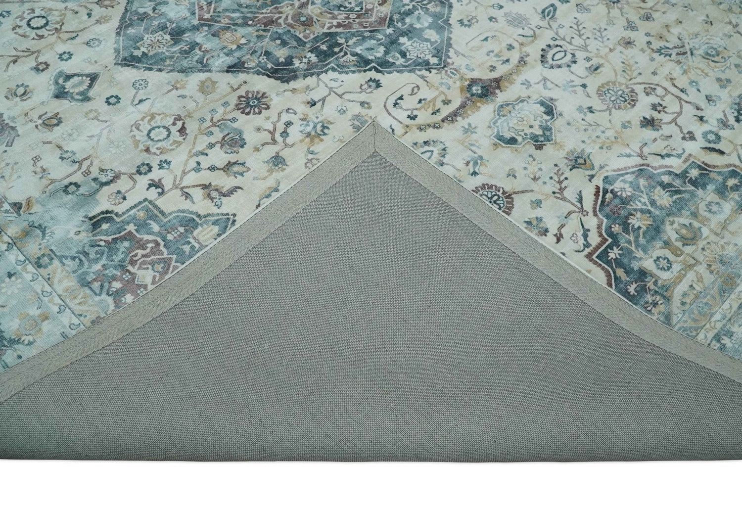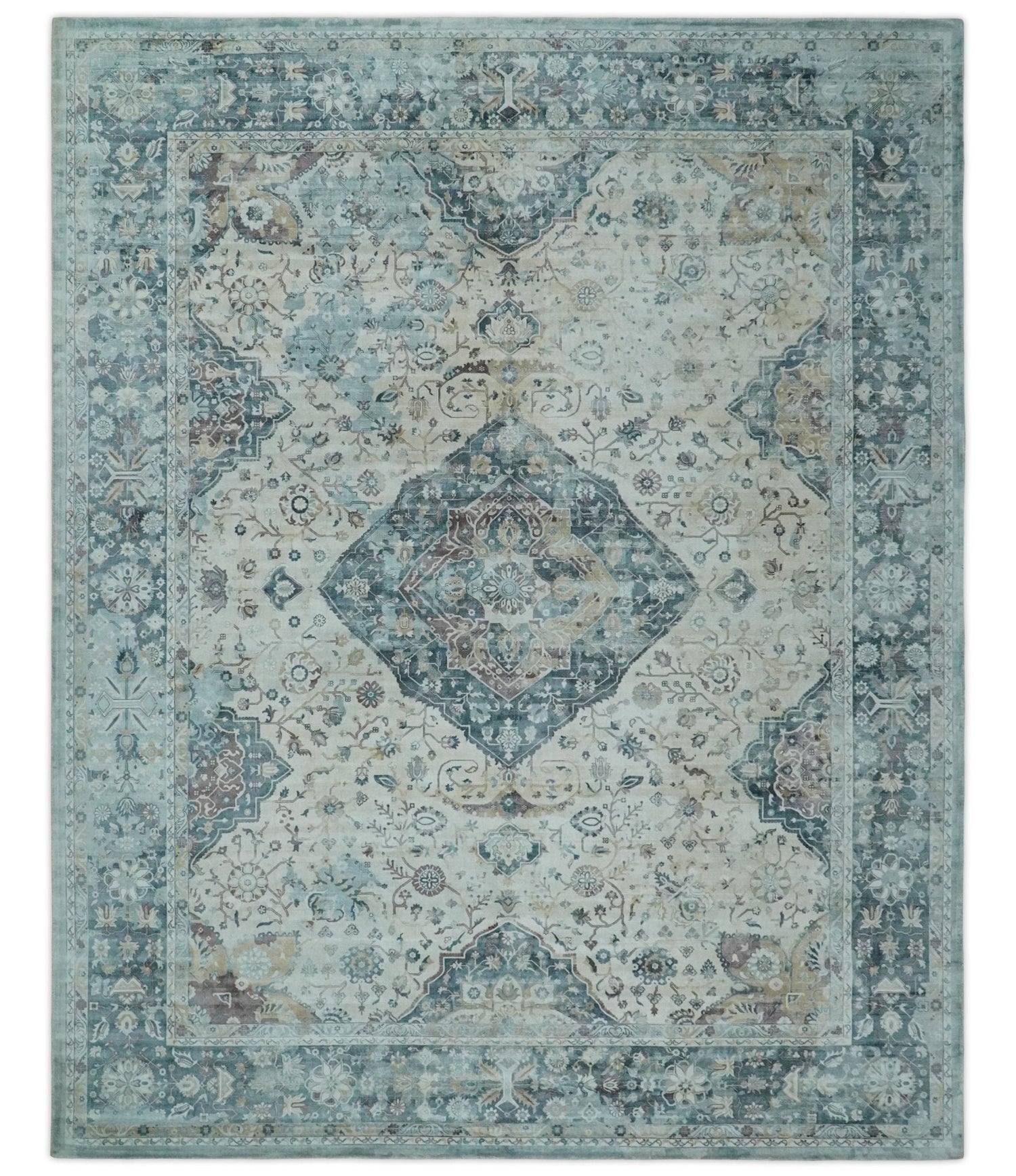 8x10 Gray, Beige and Brown Traditional Vintage Style Hand Tufted Art Silk Area Rug