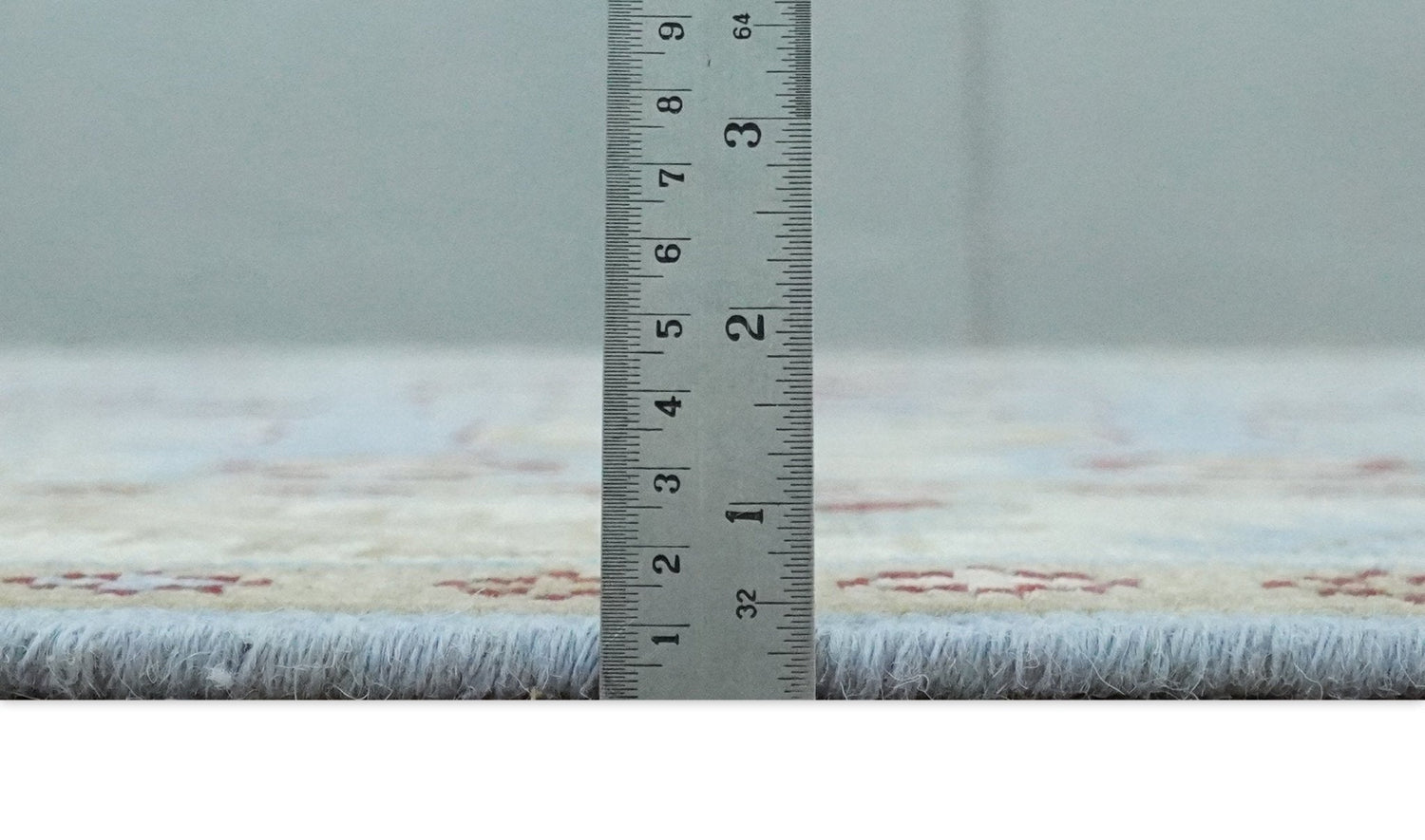 Oushak rugs have been made for centuries and carry a tradition and art. This specific rug is made in India, in the city of Bhadohi. Bhadohi is one of the biggest rug manufacturing cities. Carpet weaving in the region dates back to the 16th century during the reign of Akbar. The skilled artisans of Bhadohi have been carrying the tradition of rug-making for centuries.