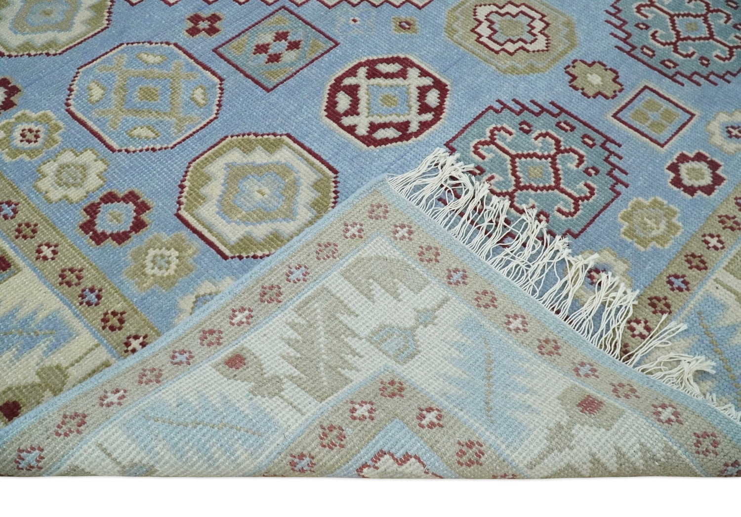 8x10 Hand Knotted Blue, Ivory, Beige and Rust Traditional Persian Oushak Wool Rug | AC8810 - 8x10 is backordered and will ship as soon as it is back in stock.