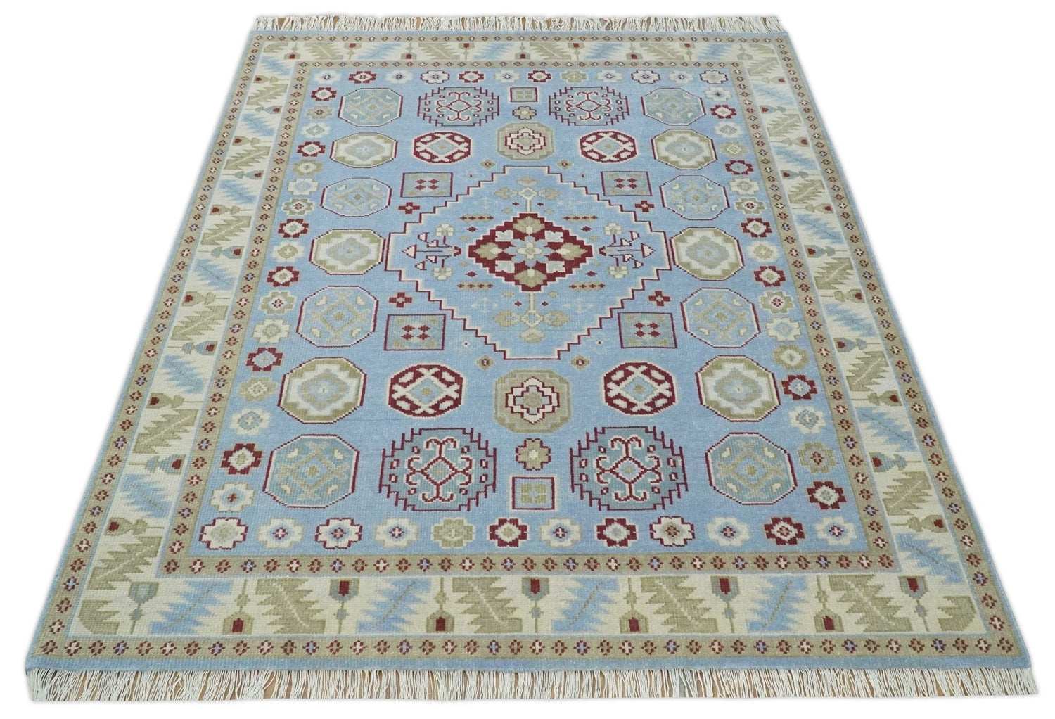 - Color: Blue, Ivory, Beige, and Rust