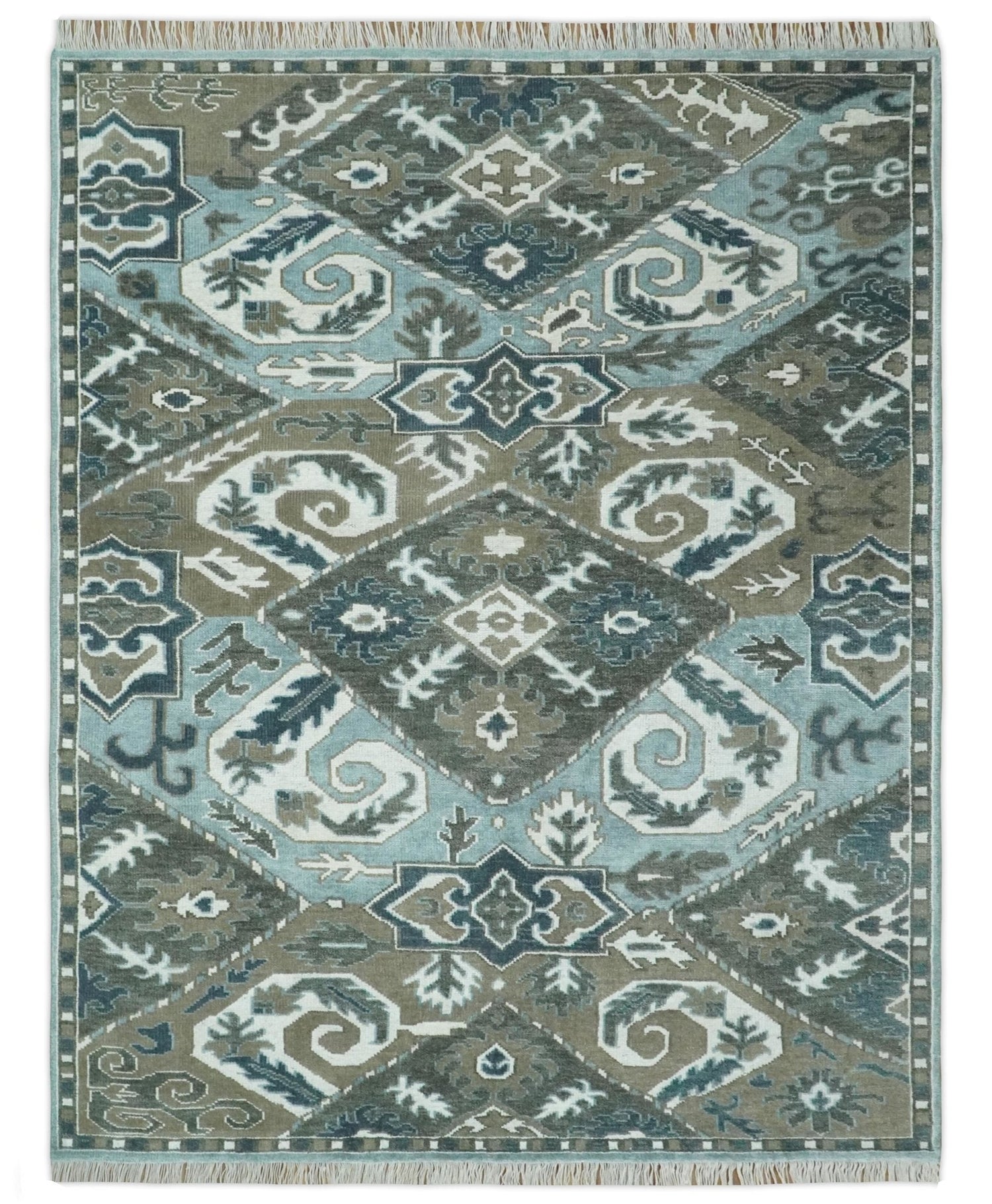 8x10 Hand Knotted Gray, Blue and Ivory Traditional Persian Oushak Wool Rug | AC6810