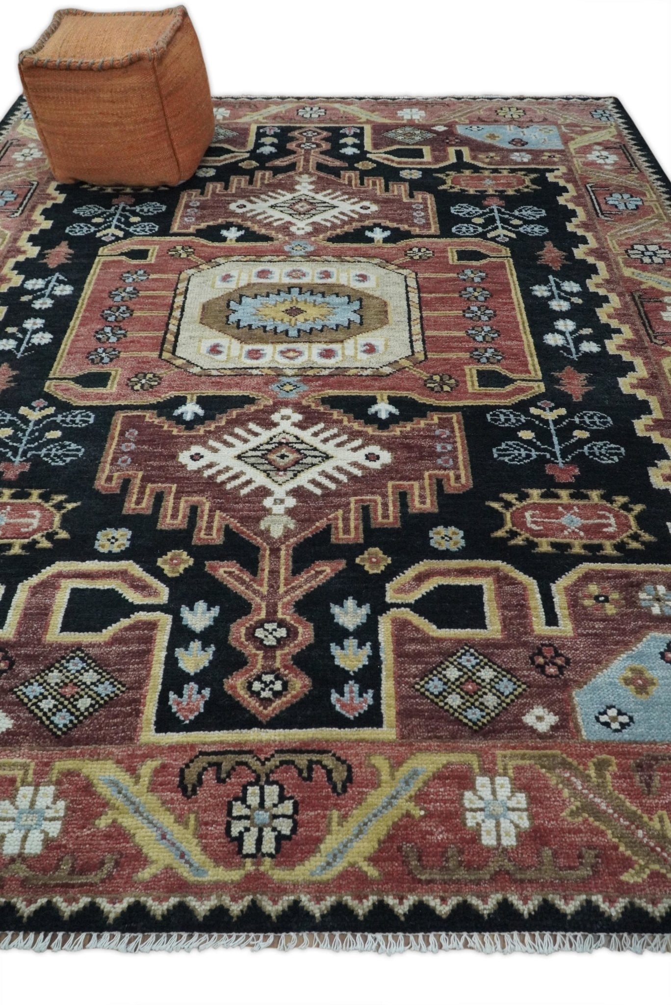 8x10 Hand Knotted Ivory, Black and Rust Traditional Heriz Serapi Antique Wool Rug | TRDCP753