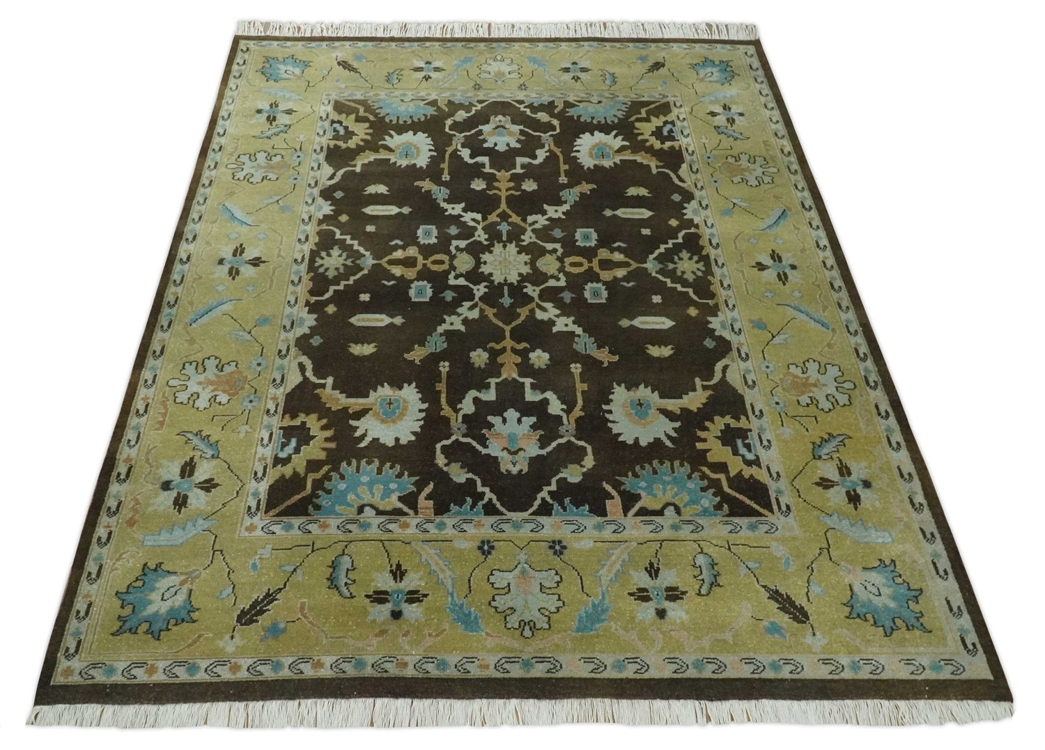 8x10 Hand Knotted Olive and Green Traditional Persian Oushak Wool Rug | AC3810 - 8x10 is backordered and will ship as soon as it is back in stock.