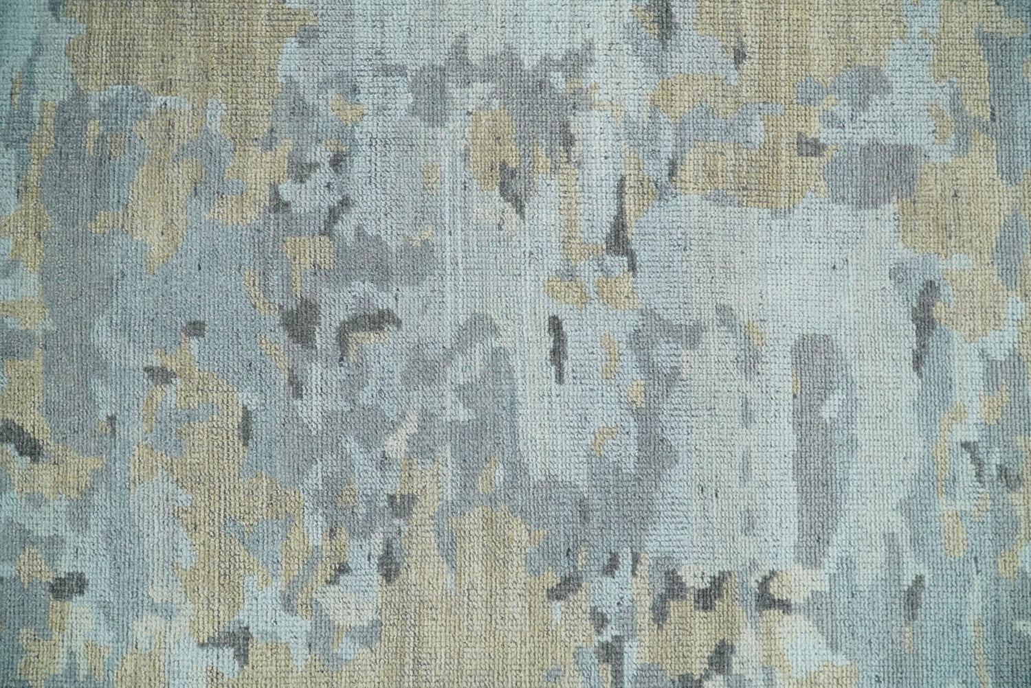 This Hand-Knotted Rug has been Made with Handspun Wool. The beautiful colors blended with modern abstract design give a contemporary touch to your space, the rug has a low pile which enhances its feel and texture. Hand-Knotted rugs are durable and can last for decades if treated right.
