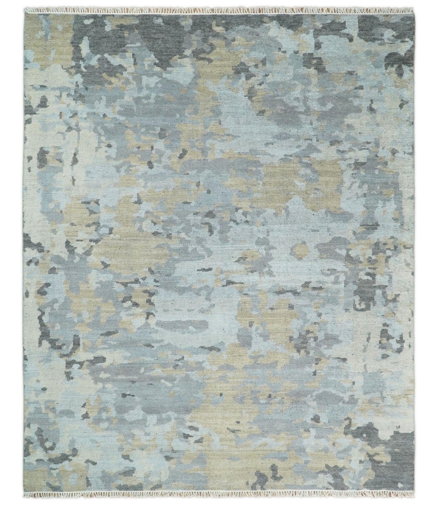 - Hand-Knotted 8 feet by 10 feet Abstract Design Rug