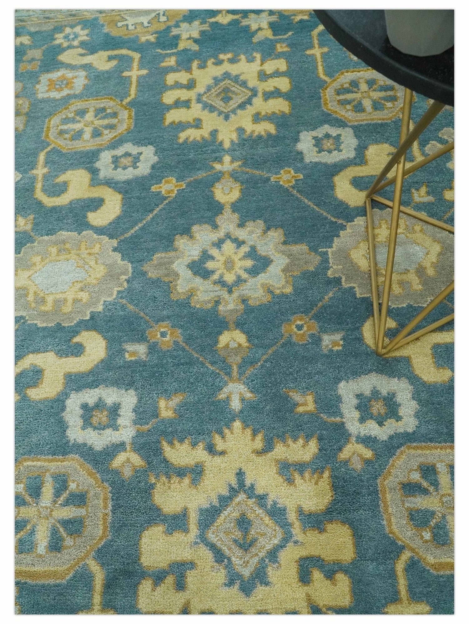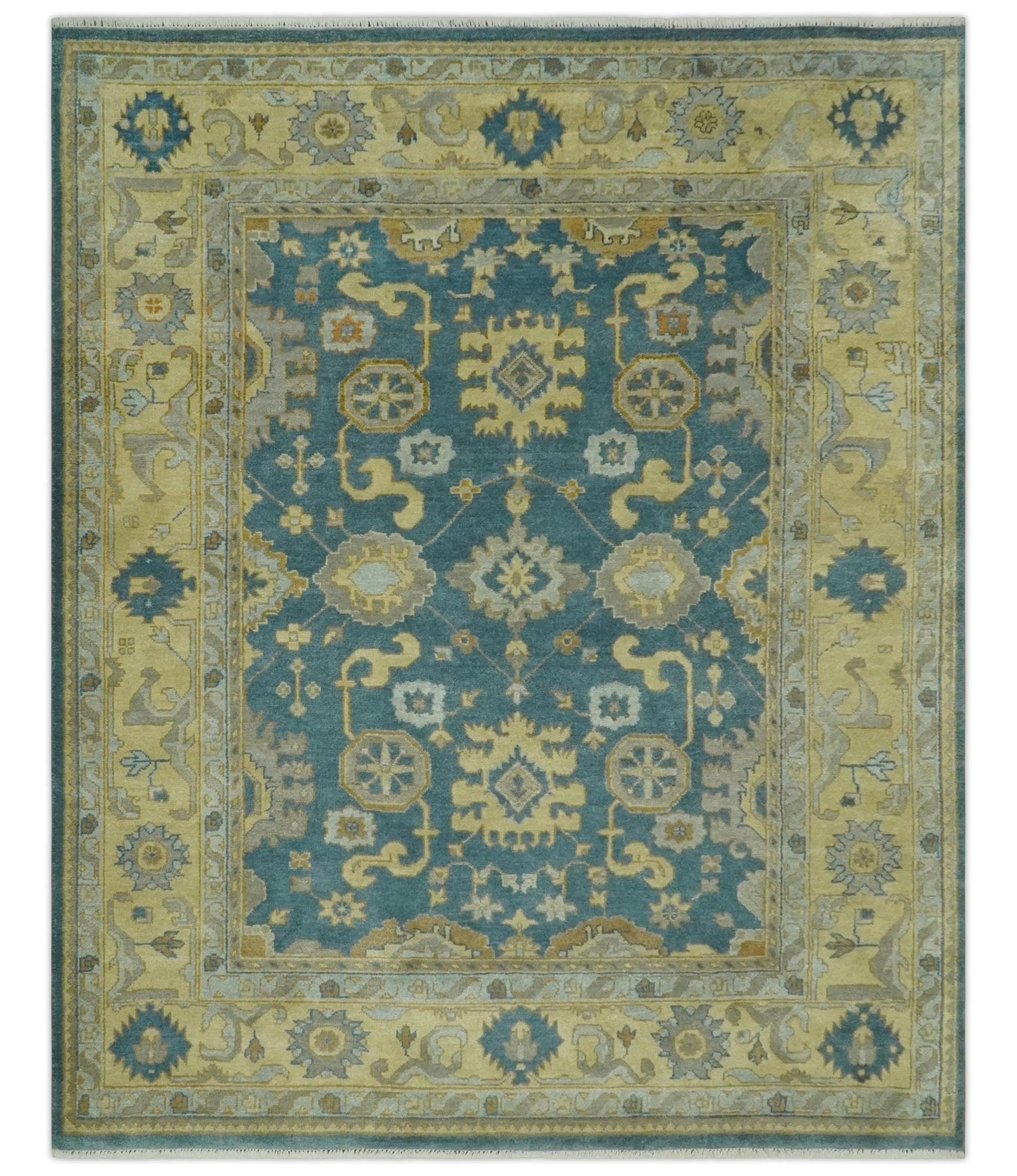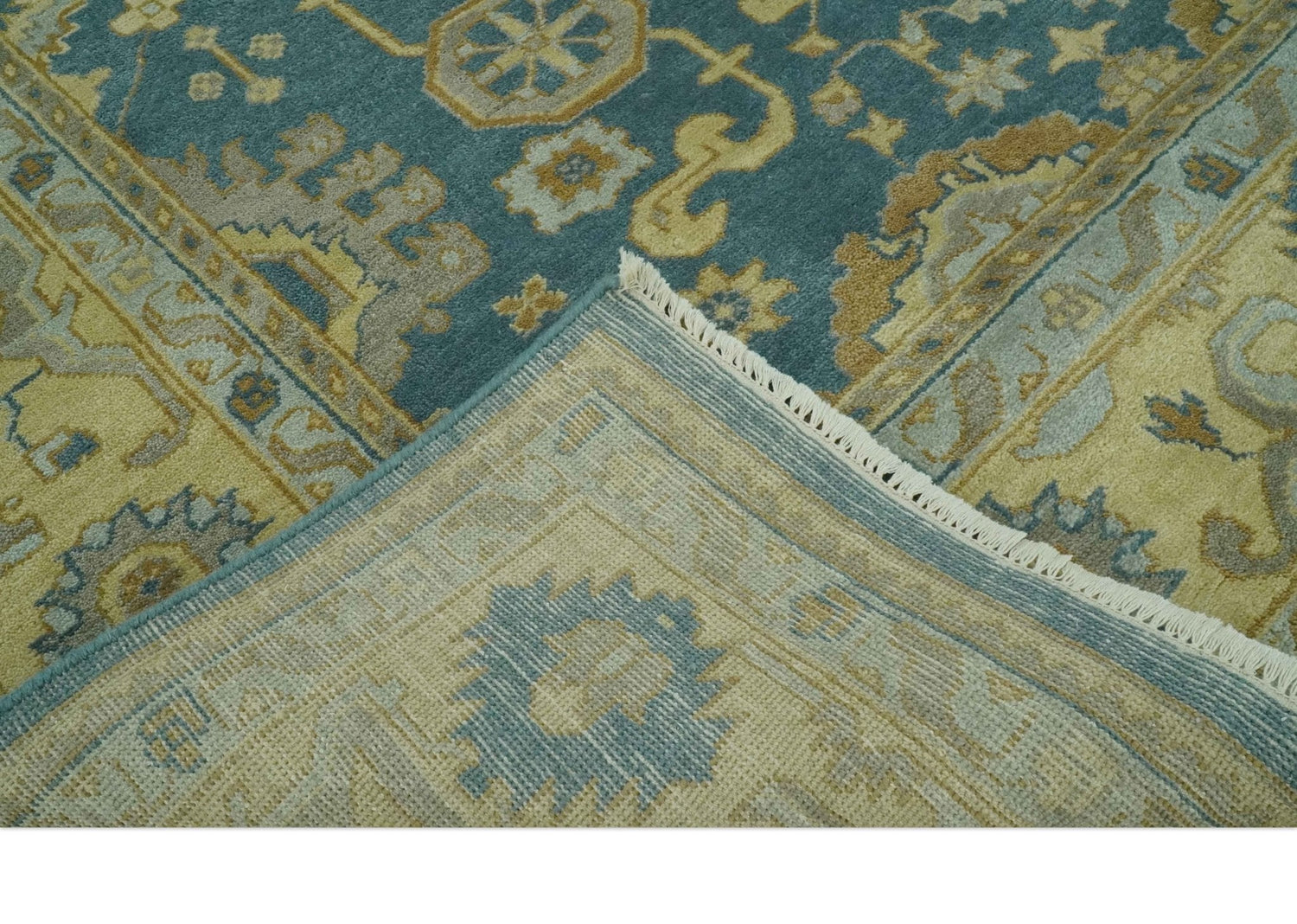 8x10 Hand Knotted Teal and Olive Traditional Oriental Oushak wool area rug - 8x10 is backordered and will ship as soon as it is back in stock.