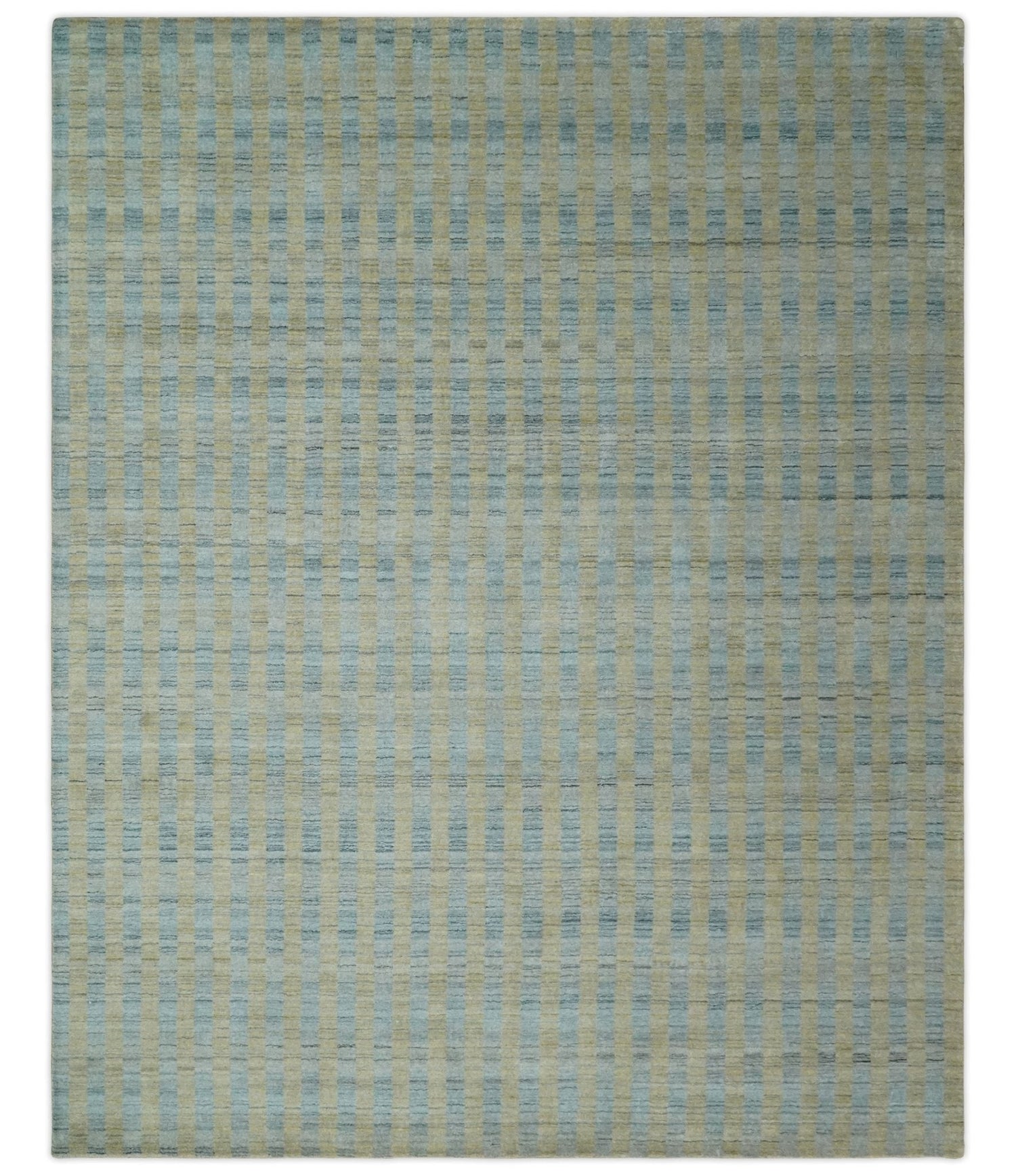 8x10 Hand Made Modern Stripes Camel and Silver Scandinavian Blended Wool Flatwoven Area Rug | KE20