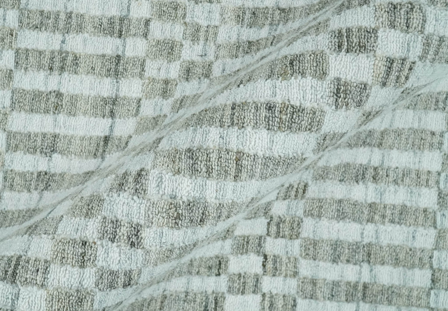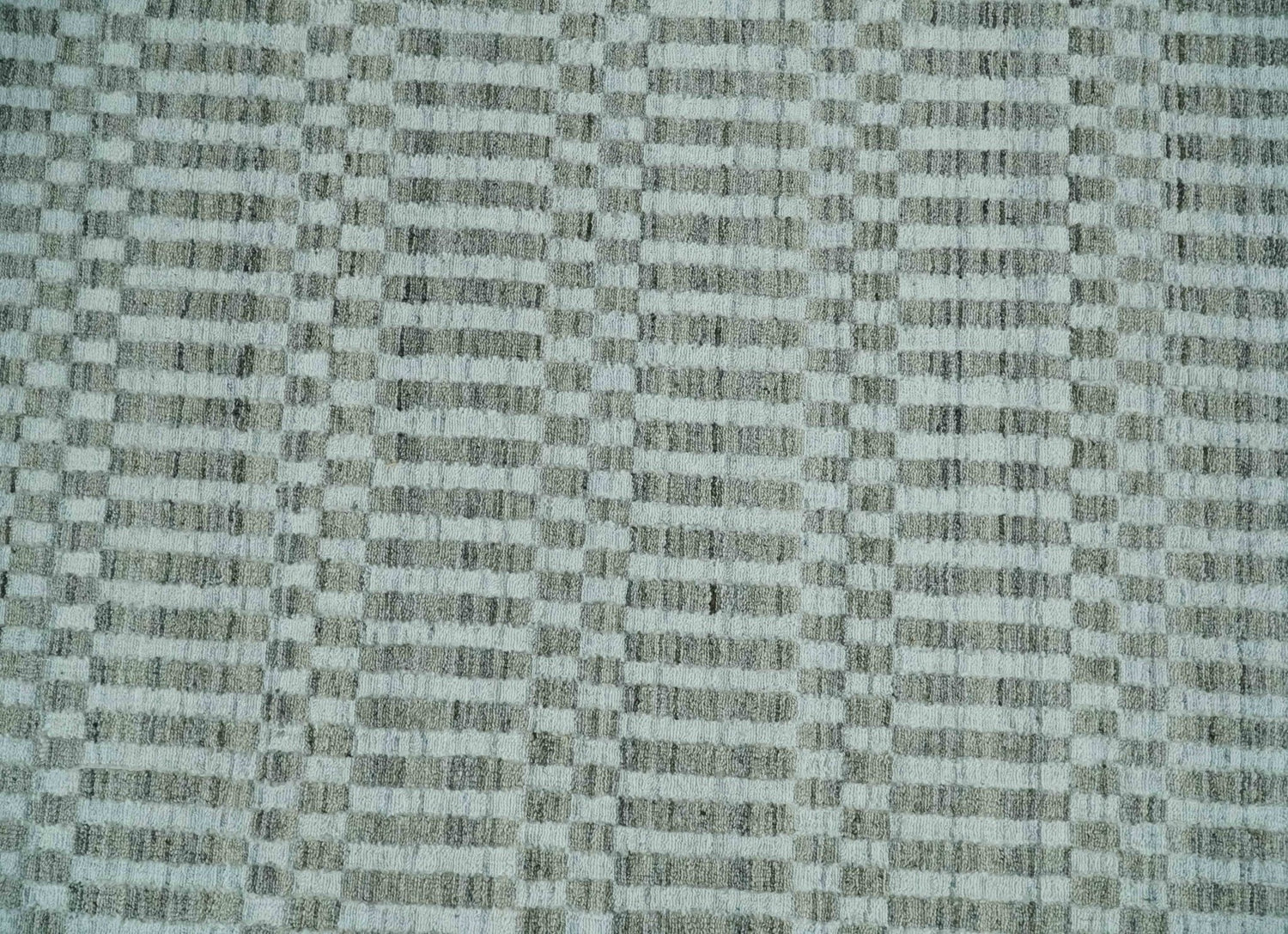 8x10 Hand Made Modern Trellis Ivory and Brown Scandinavian Blended Wool Flatwoven Area Rug | KE7