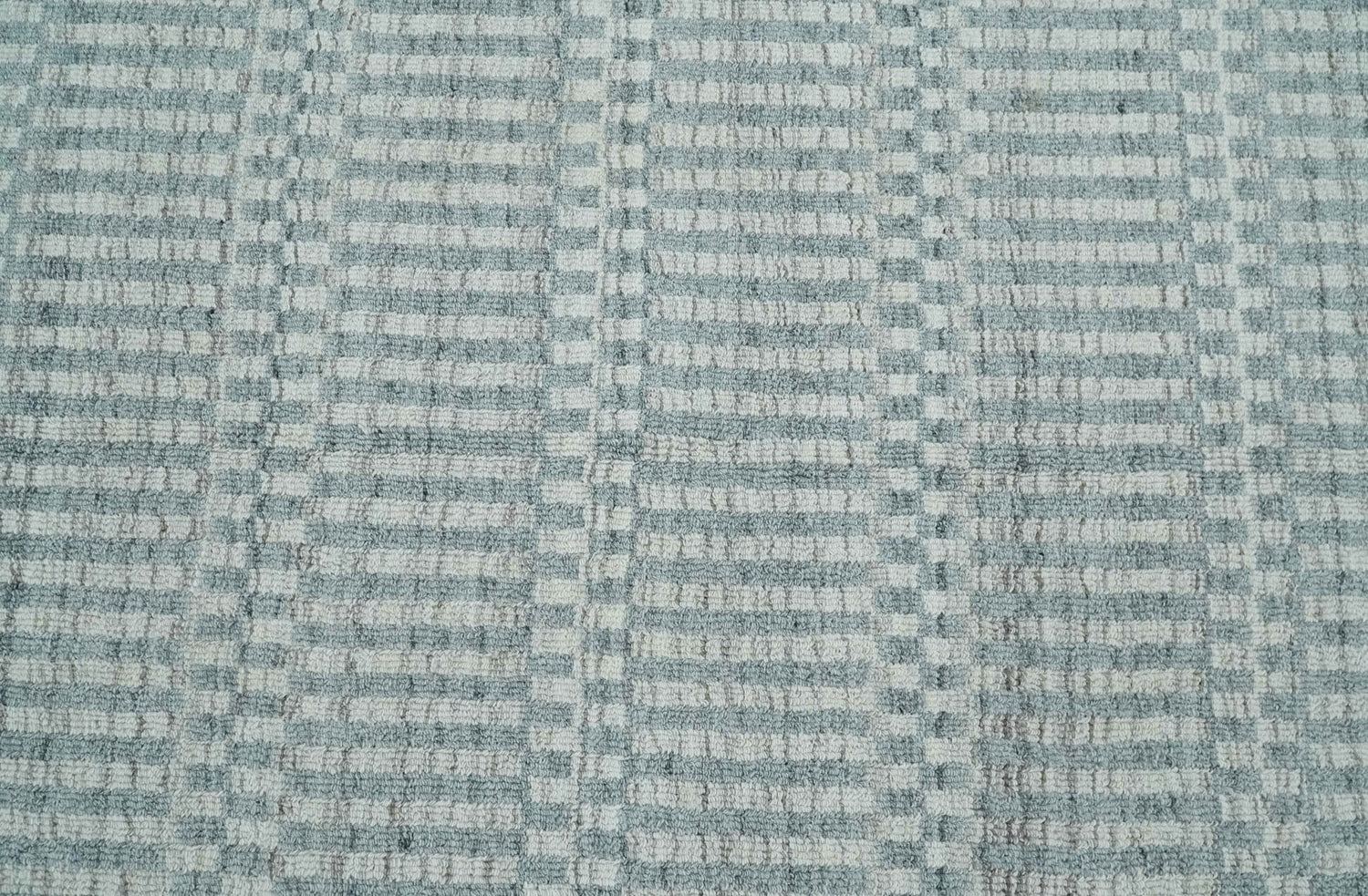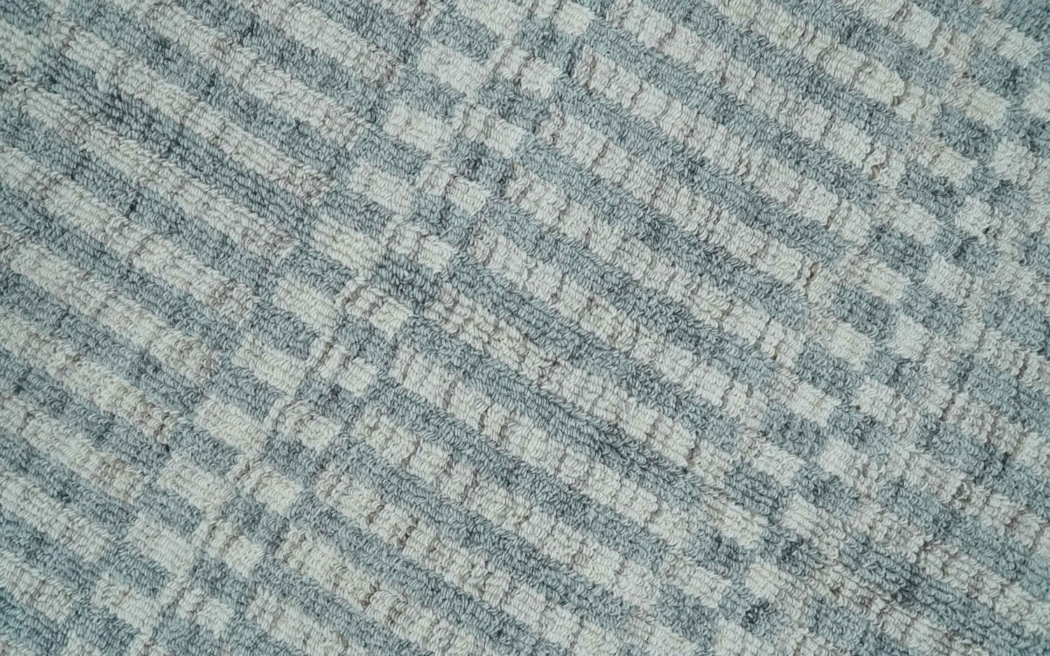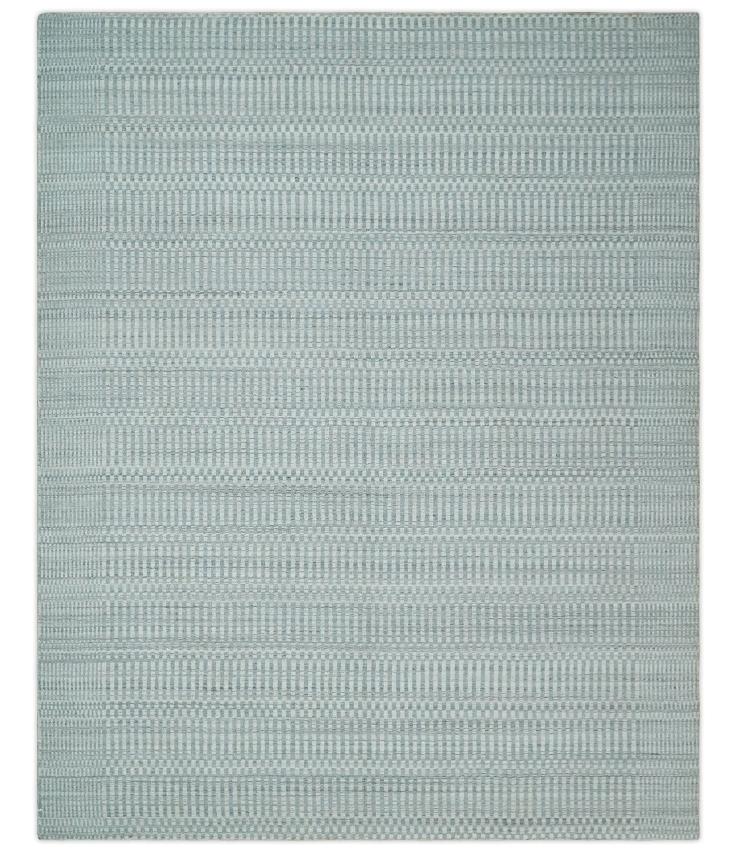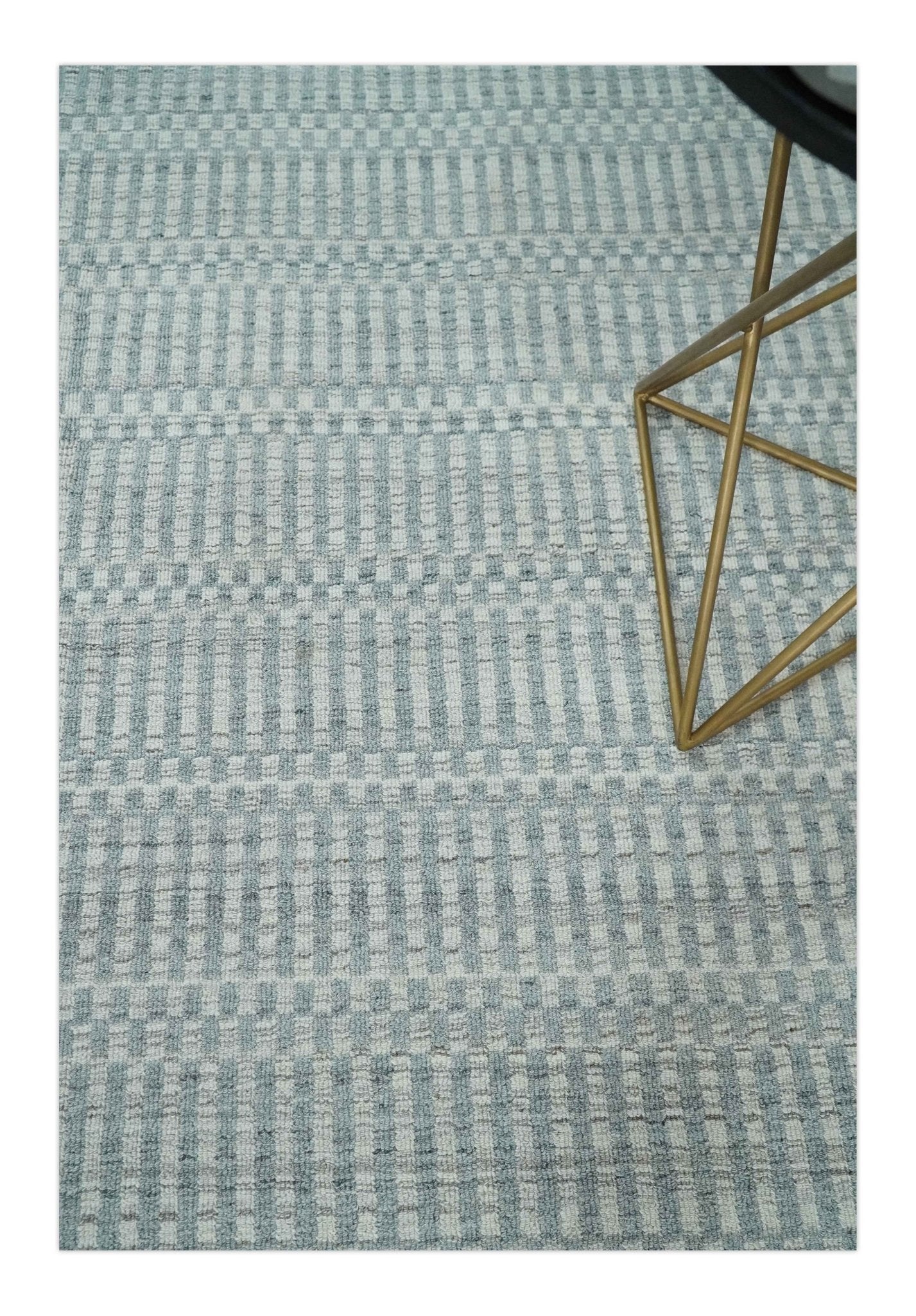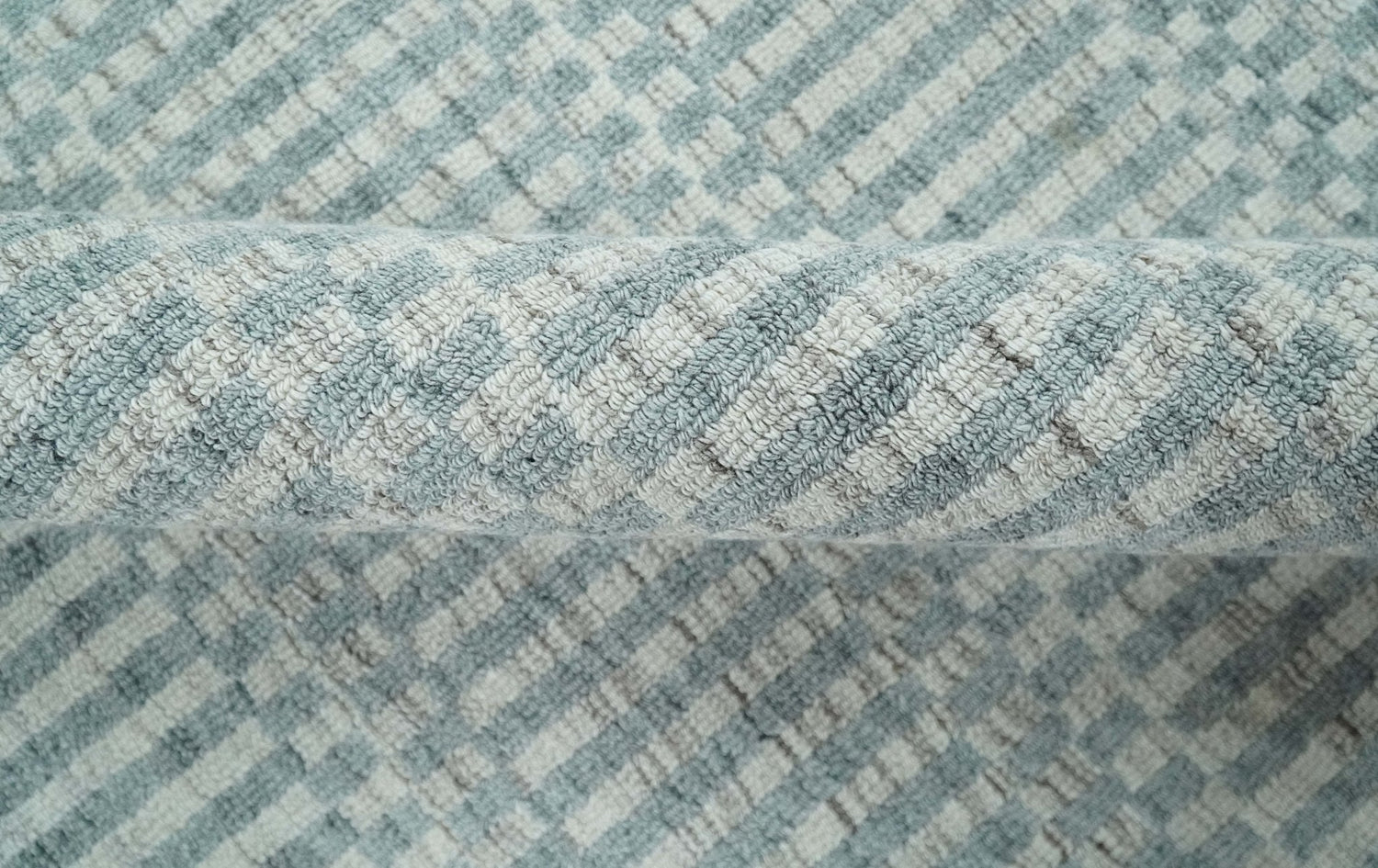 8x10 Hand Made Modern Trellis Ivory and Silver Scandinavian Blended Wool Flatwoven Area Rug | KE28