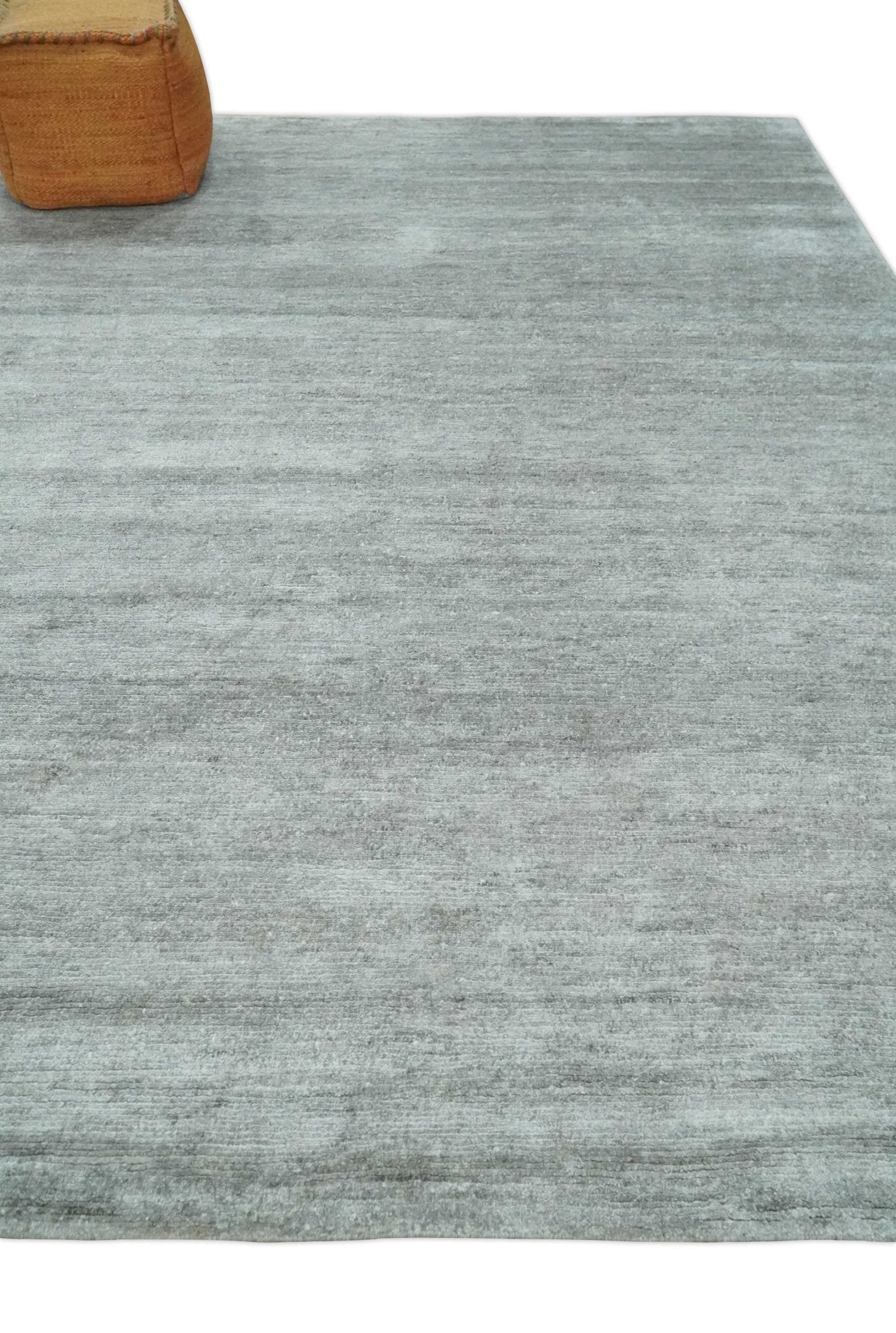 8x10 Ivory and Silver Blended Hand Loomed Modern Scandinavian Art Silk Area Rug