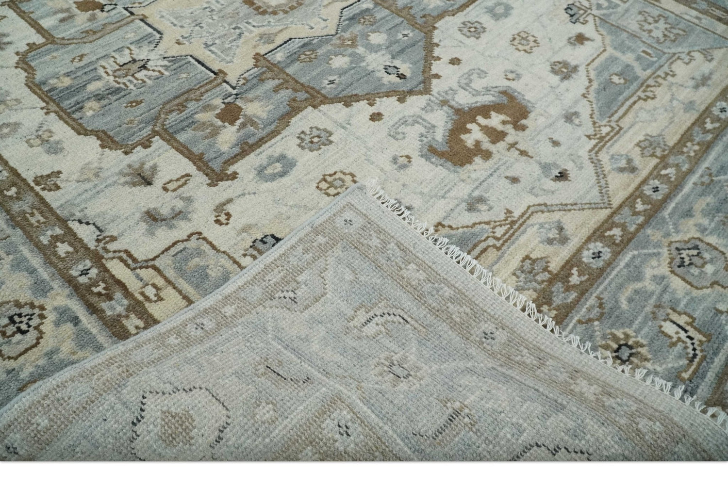 This 8x10 Ivory, Beige and Silver Heriz Serapi Traditional Vintage Hand Knotted Wool Area Rug is a stunning addition to any home. Crafted from durable, hand-knotted wool fiber and featuring traditional-style patterning, this piece is sure to be an eye-catching focal point.
