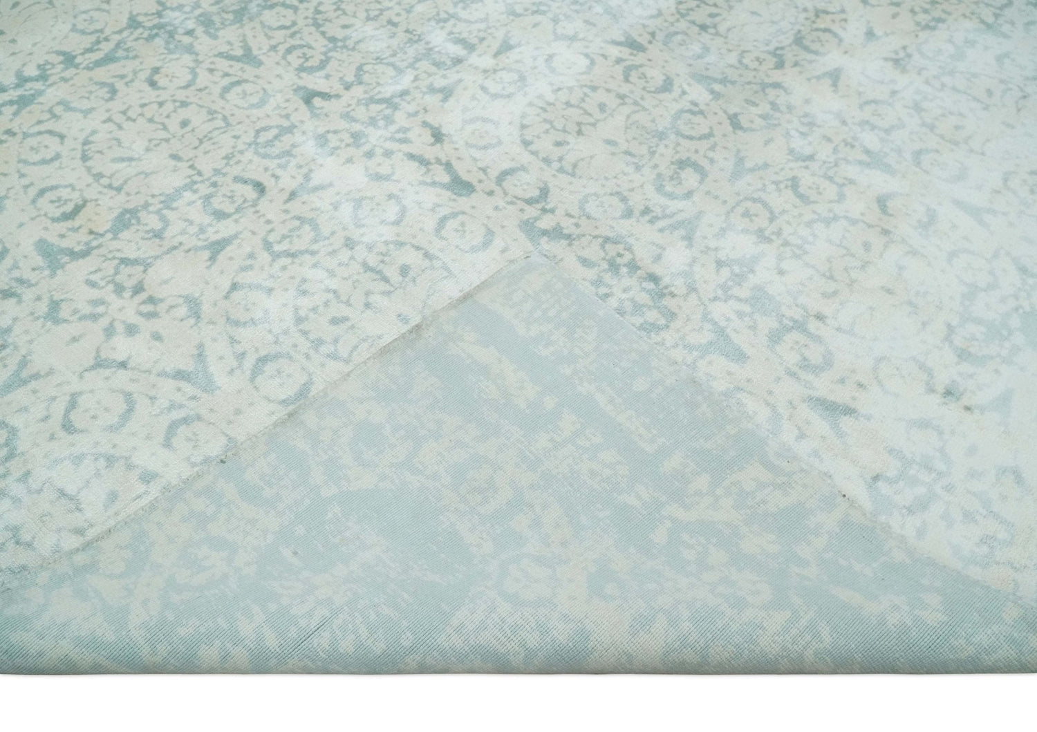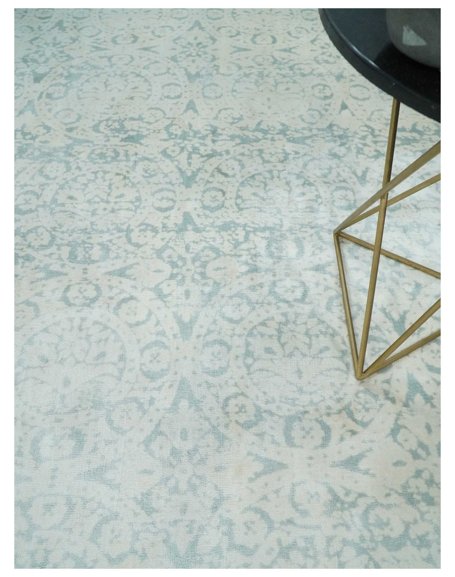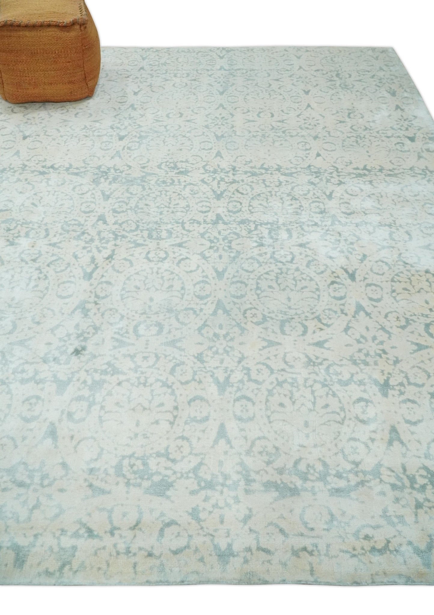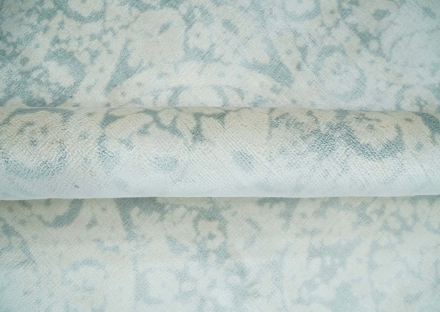 8x10 Ivory, Gray and Silver Modern Transitional Handmade Art Silk Area Rug