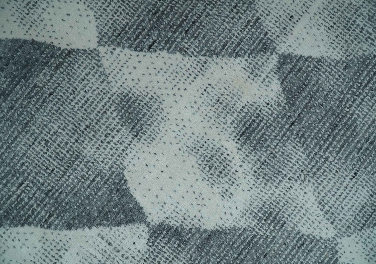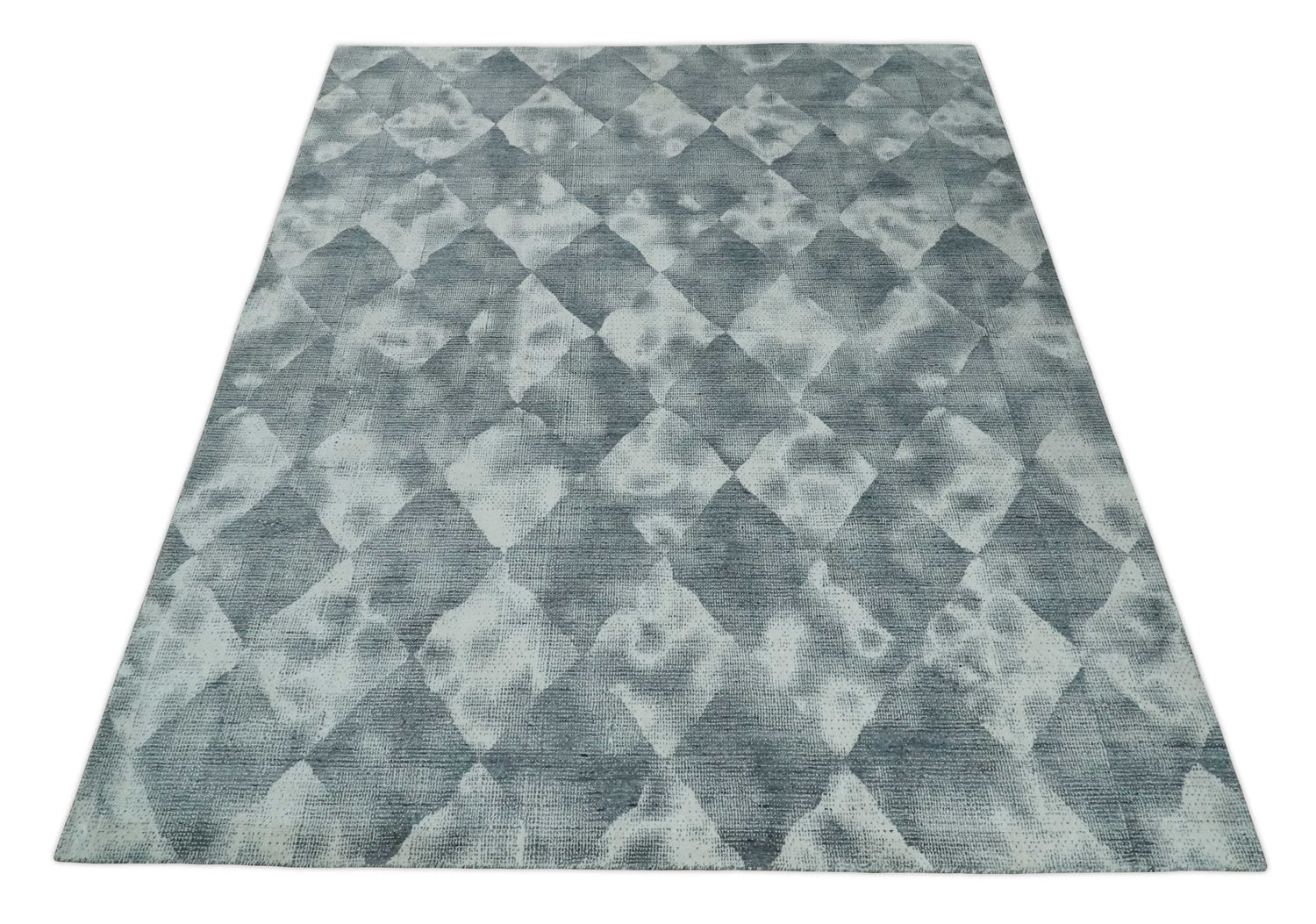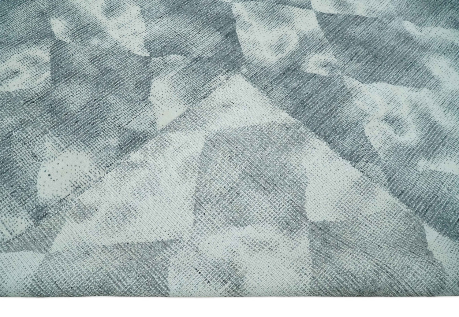 8x10 Ivory, Silver and Gray Modern Geometrical Handmade Art Silk Area Rug