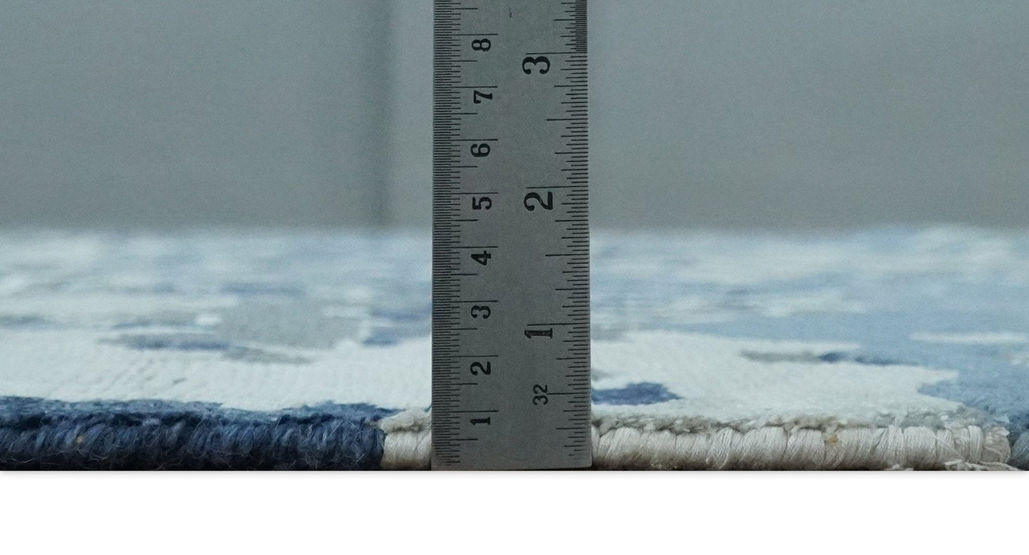 8x10 Ivory, Silver, Blue and Blue Modern Abstract Hand Knotted Wool and Bamboo Silk Area Rug - 8x10 is backordered and will ship as soon as it is back in stock.