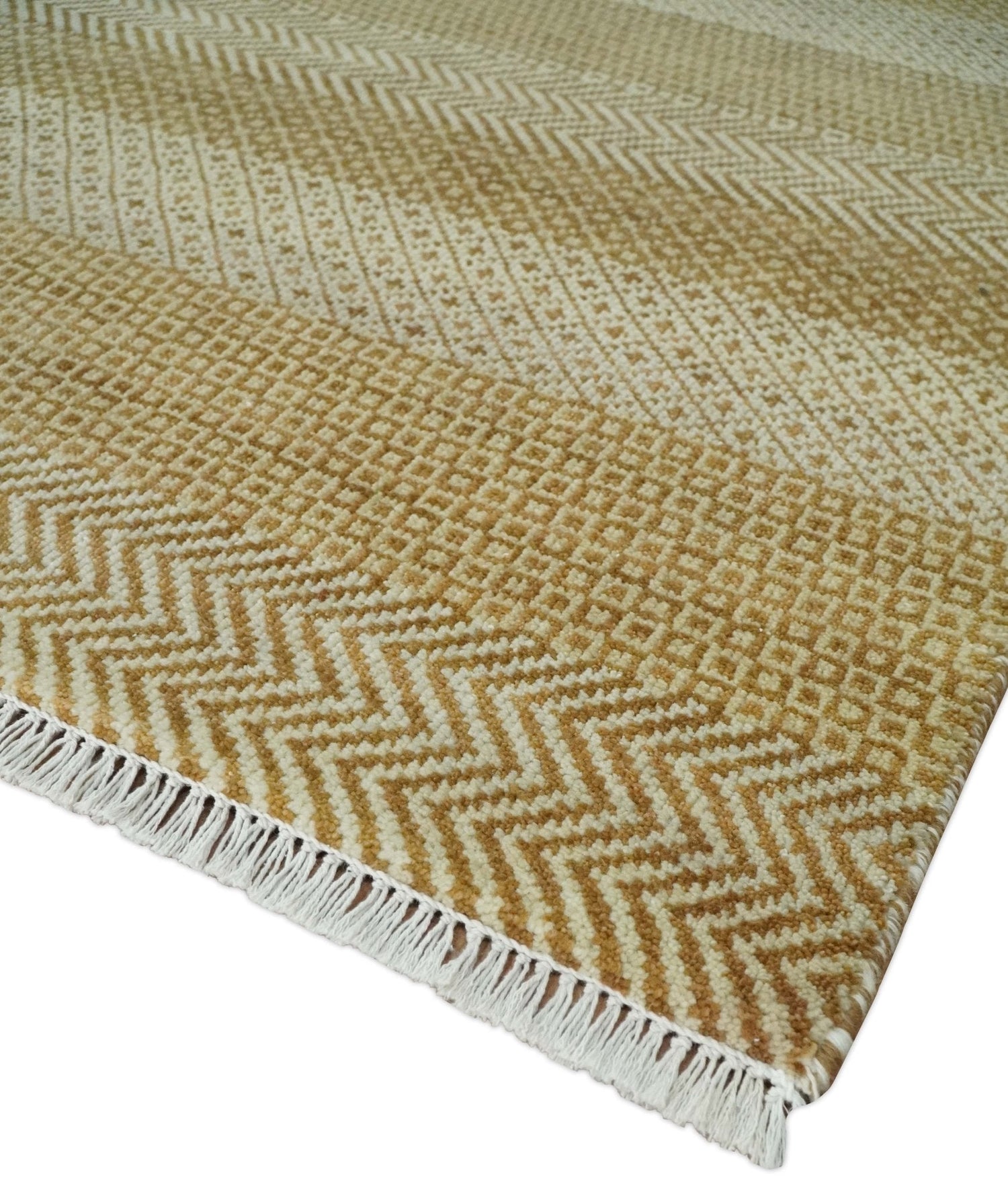 8x10 Modern Geometric Trellis Scandinavian Hand Knotted Beige, Camel and Ivory Wool Area Rug - 8x10 is backordered and will ship as soon as it is back in stock.