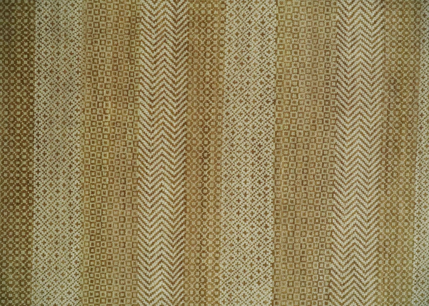 8x10 Modern Geometric Trellis Scandinavian Hand Knotted Beige, Camel and Ivory Wool Area Rug