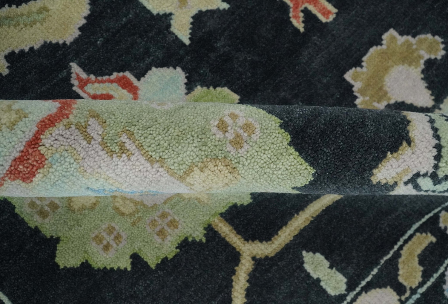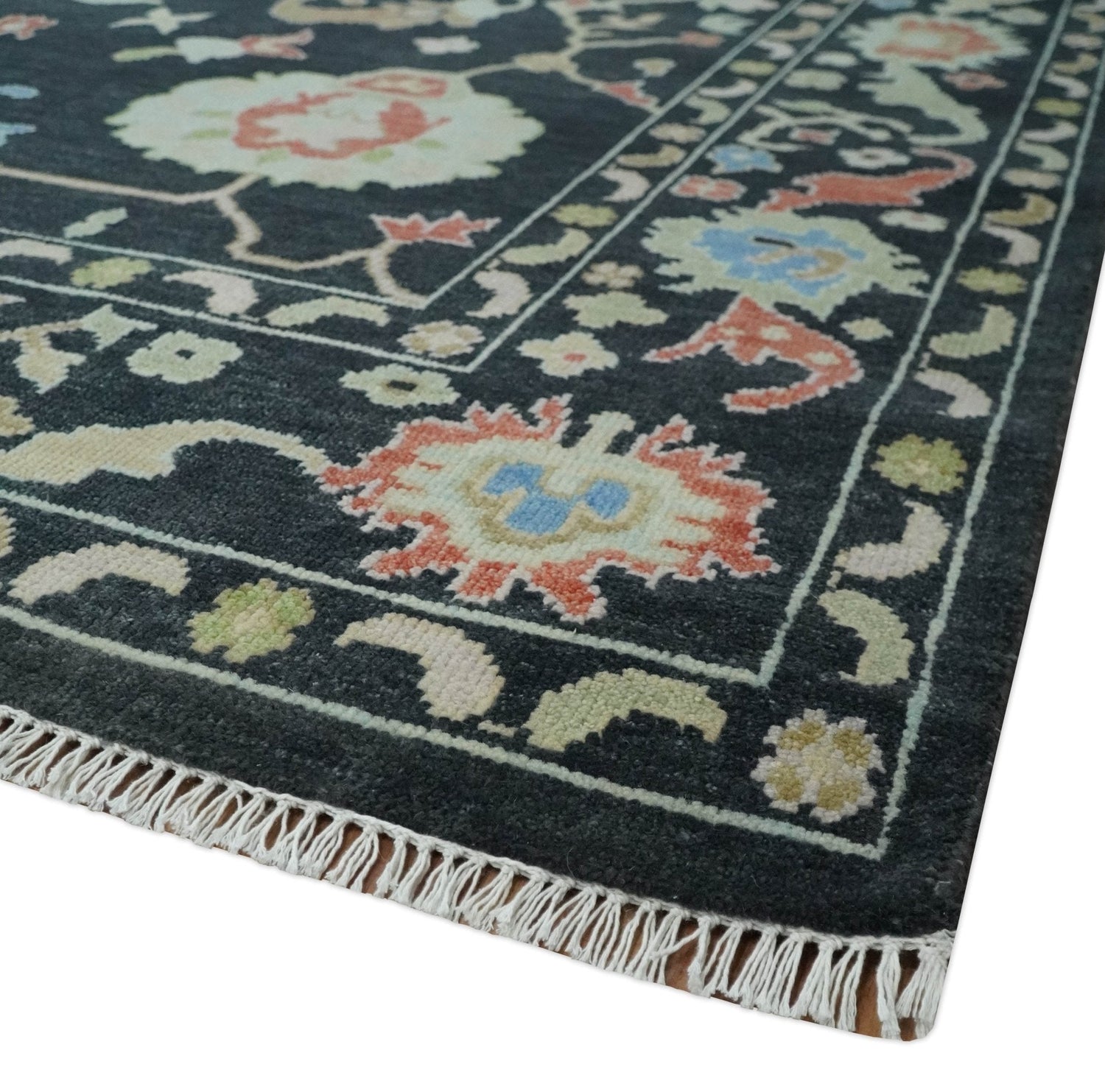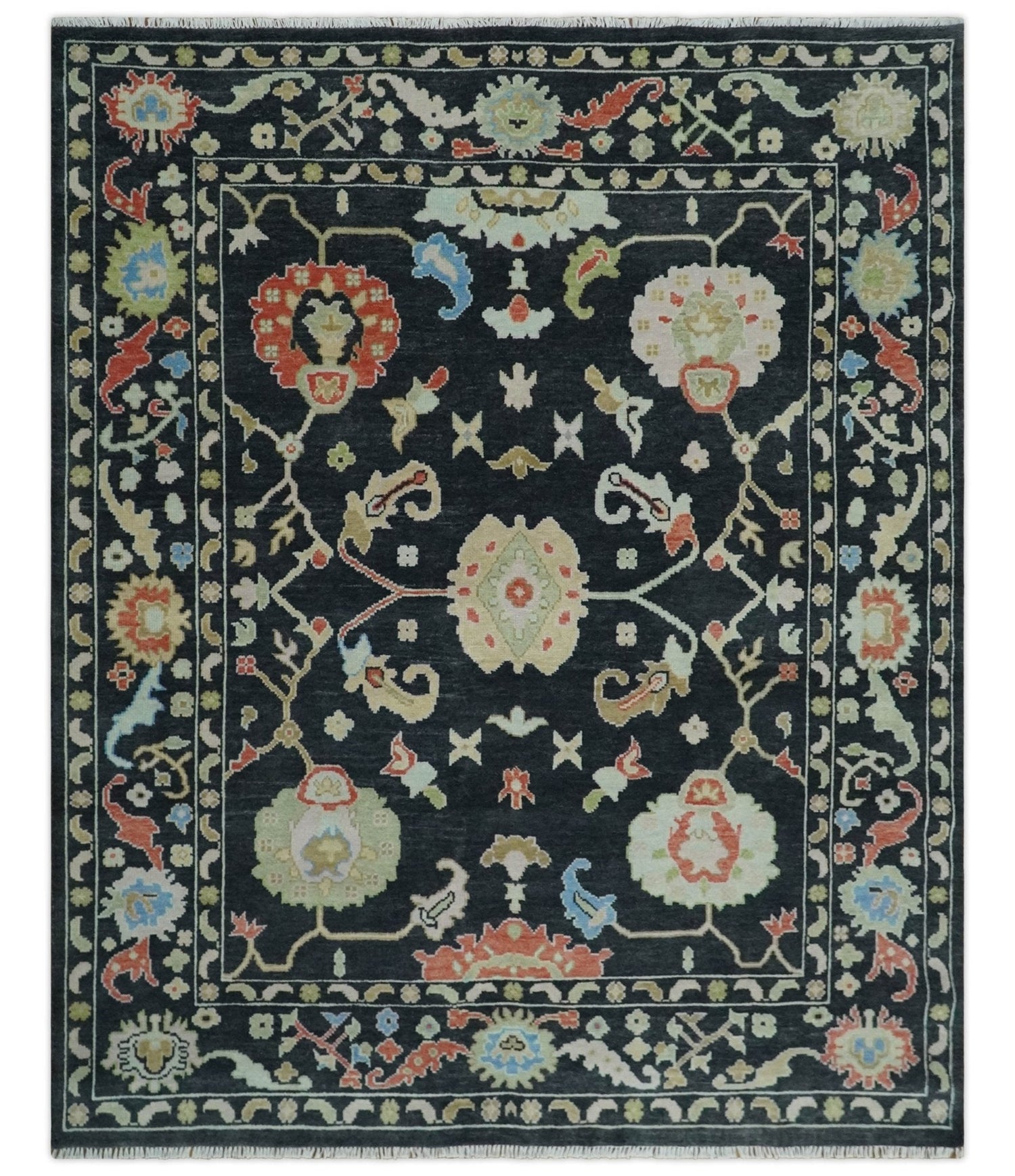 8x10 Modern Hand Knotted Black and Multicolor Traditional Oushak Wool Area Rug - 8x10 is backordered and will ship as soon as it is back in stock.