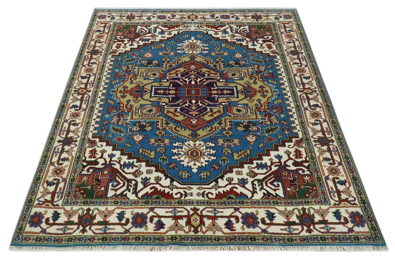 8x10 Olive, Blue and Ivory Heriz Serapi Hand knotted Traditional wool Area Rug - 8x10 is backordered and will ship as soon as it is back in stock.