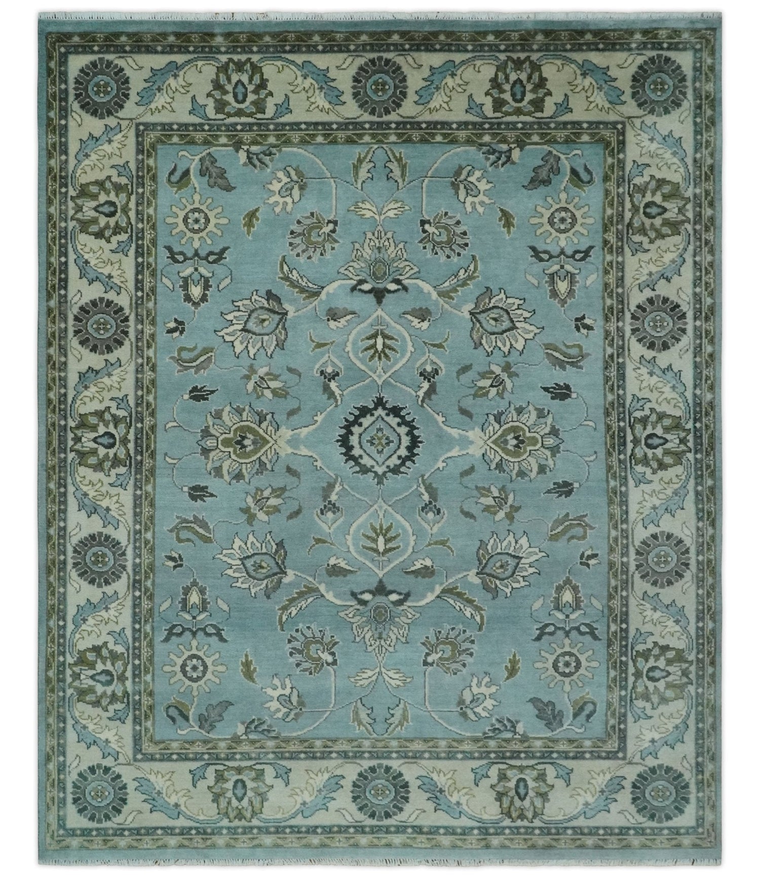 8x10 Premium Blue, Ivory and Green Traditional Floral Hand knotted wool Area Rug