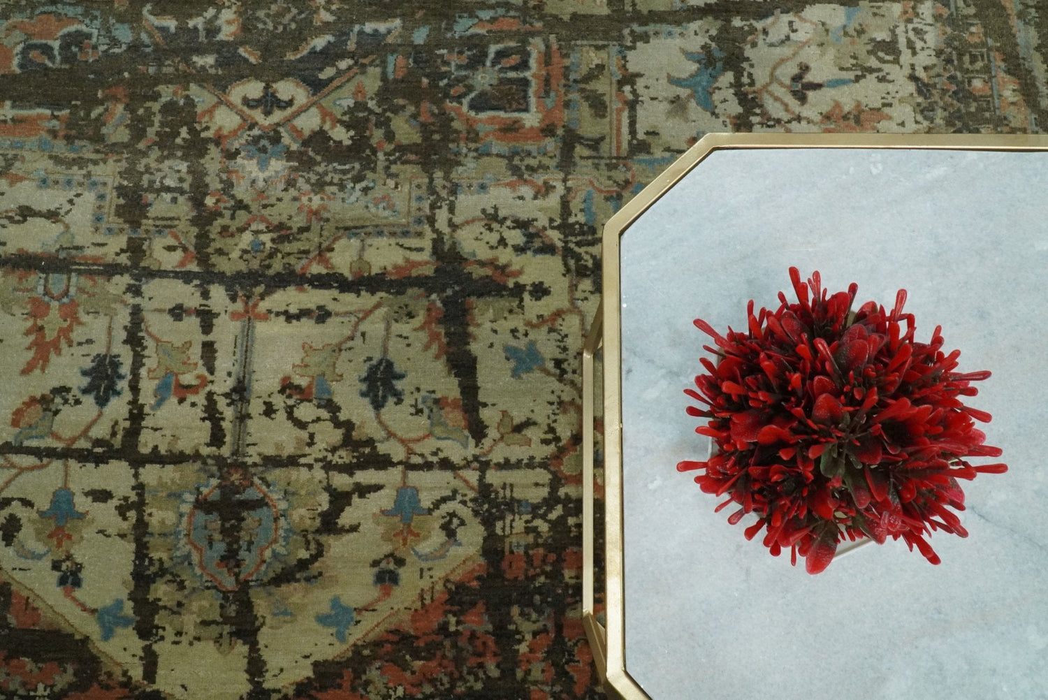 - Hand-Knotted 8 feet by 10 feet wool rug.