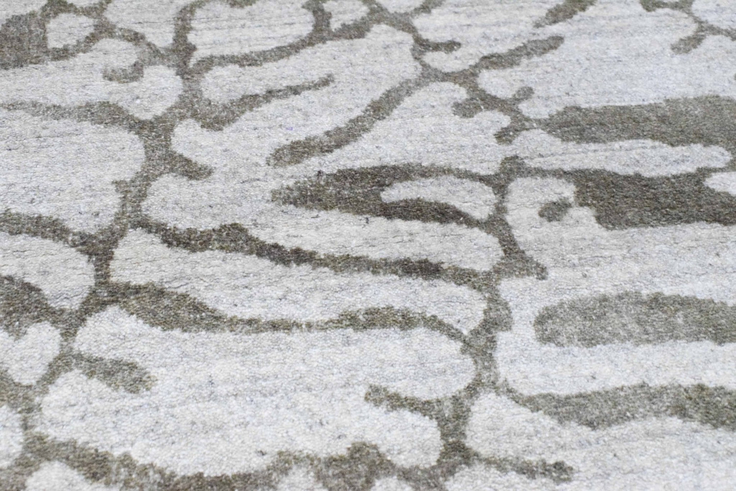 - Hand Loom Printed 8 feet by 10 feet wool and viscose rug.