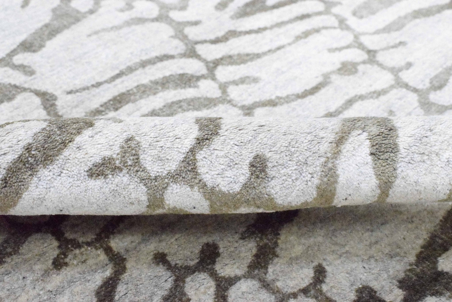 8x10 Rug, White and Brown Rug, Modern and Abstract Rug, Hand-loom Printed Viscose Area Rug | TRD020QT810