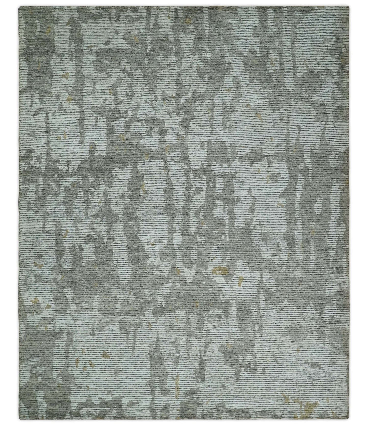 8x10 Silver and Charcoal Modern Abstract Handmade Wool Area Rug