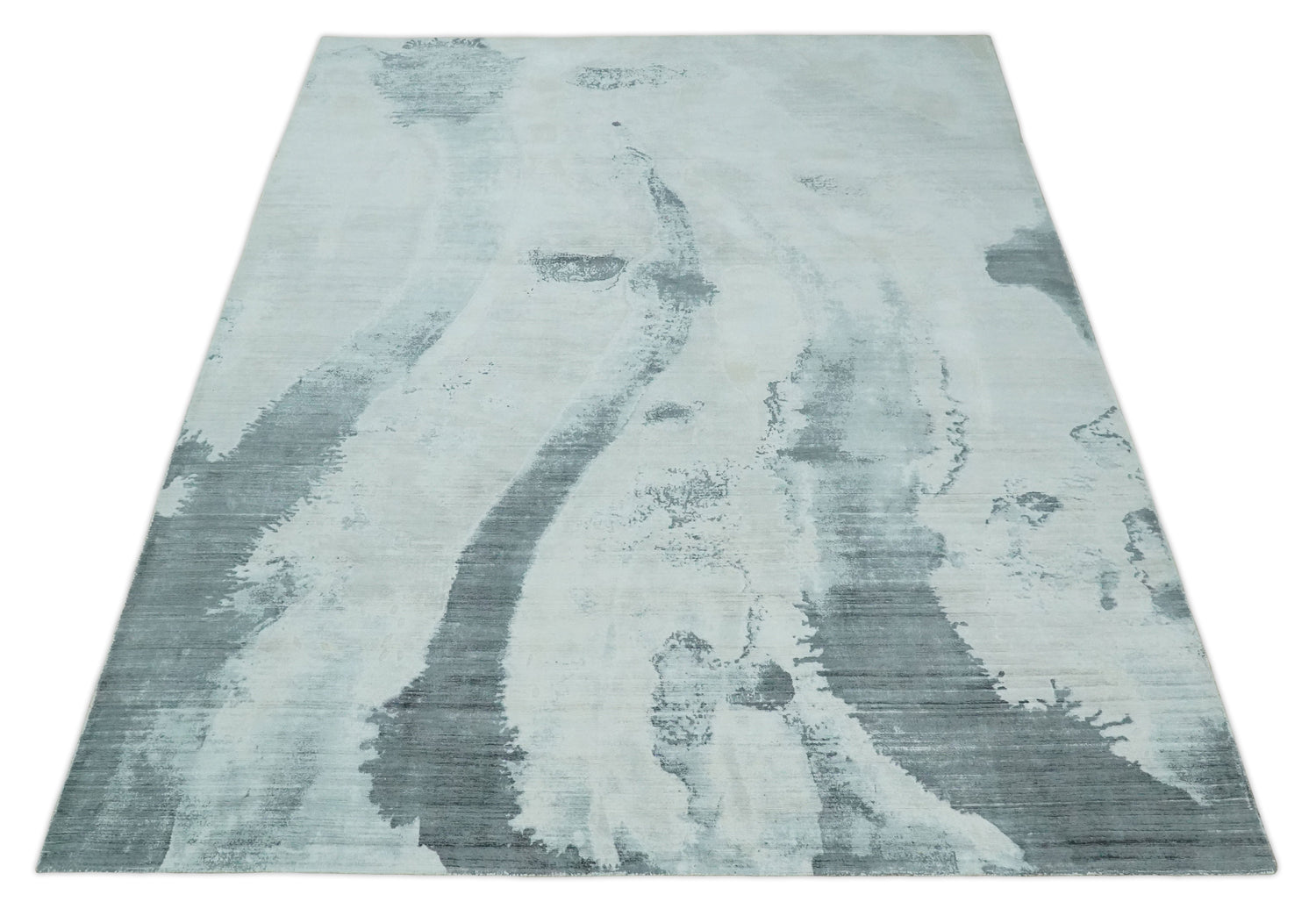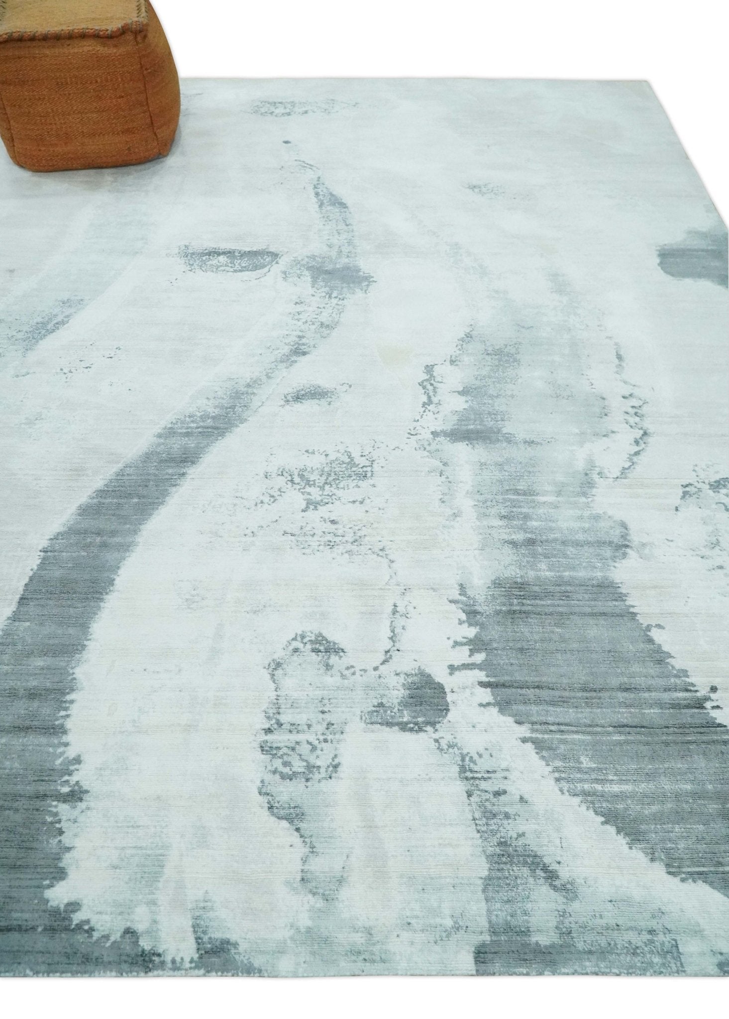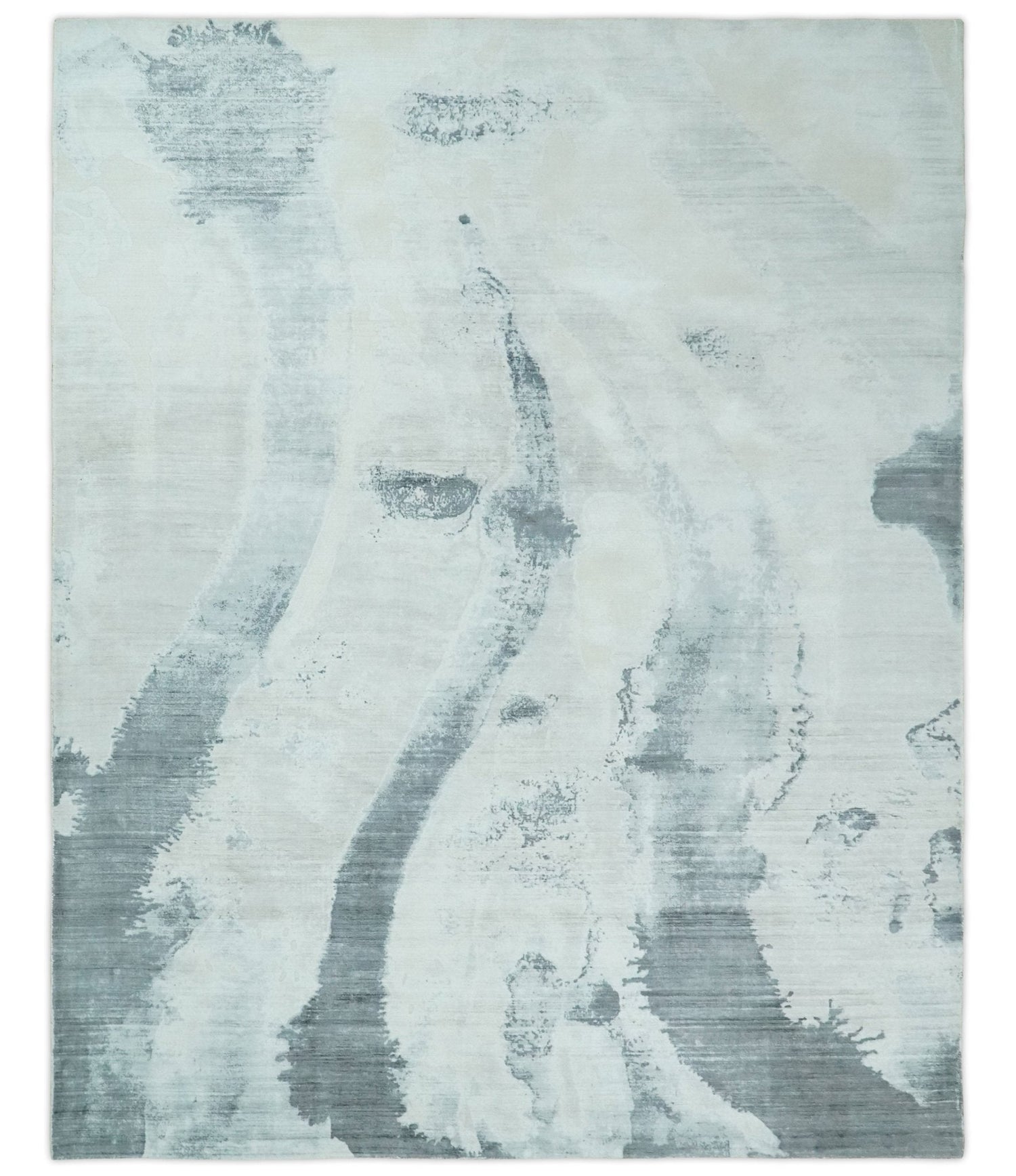 8x10 Silver, Ivory and Charcoal Modern Abstract Hand Loomed Art Silk Area Rug