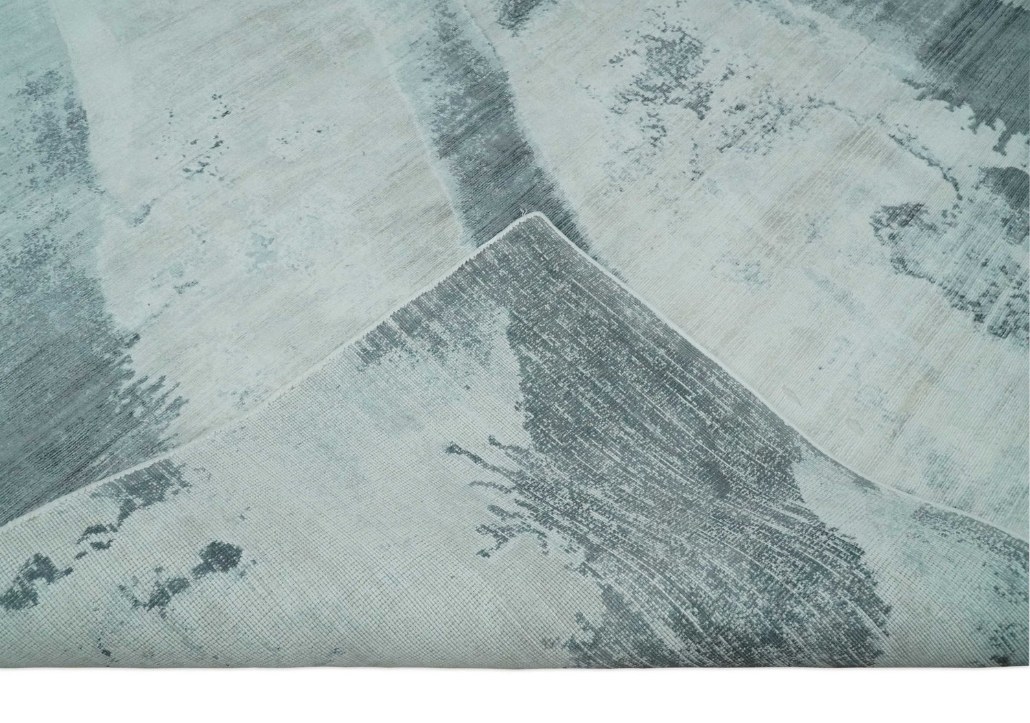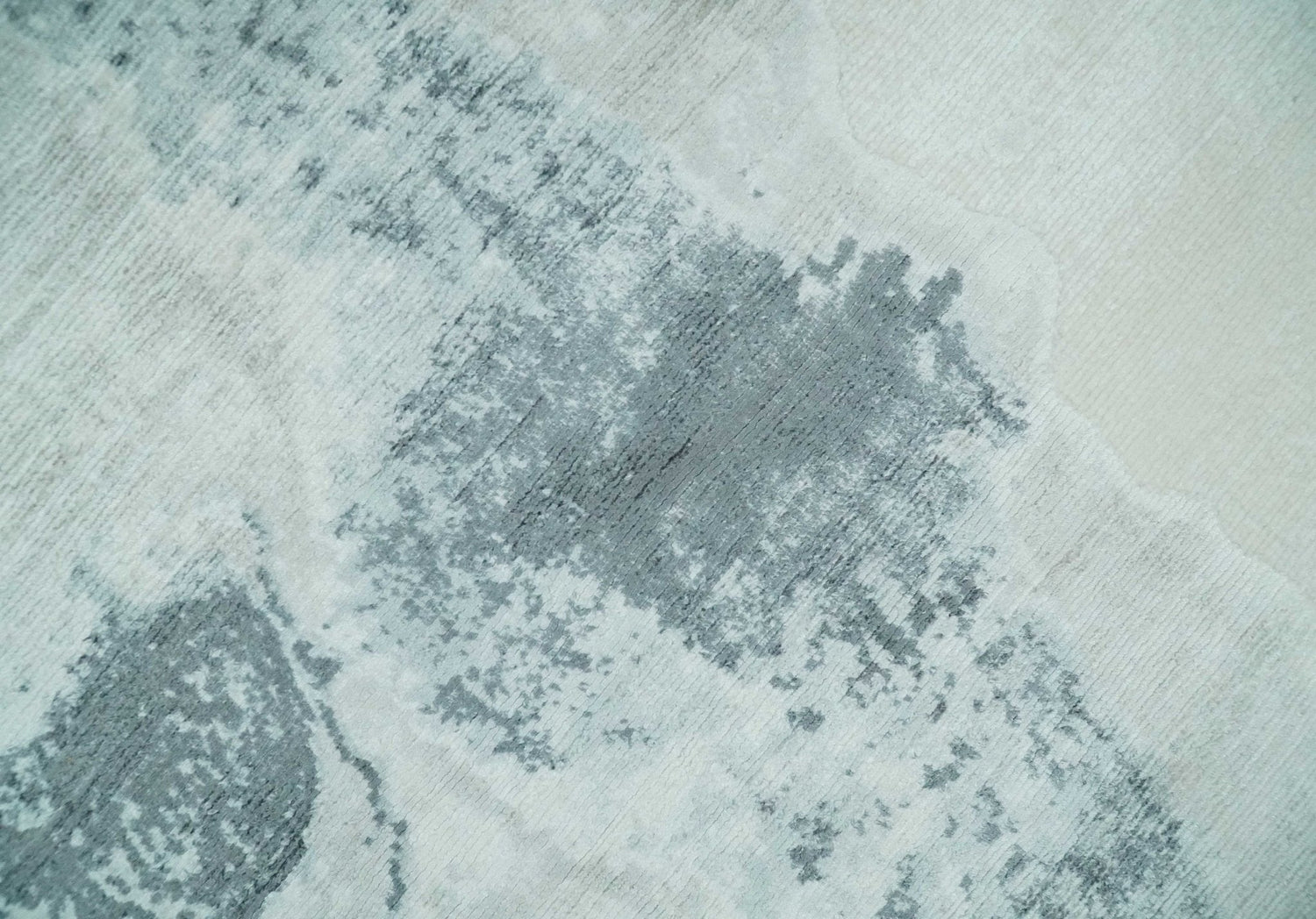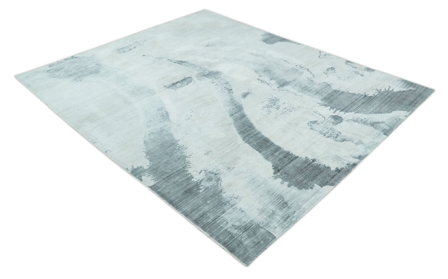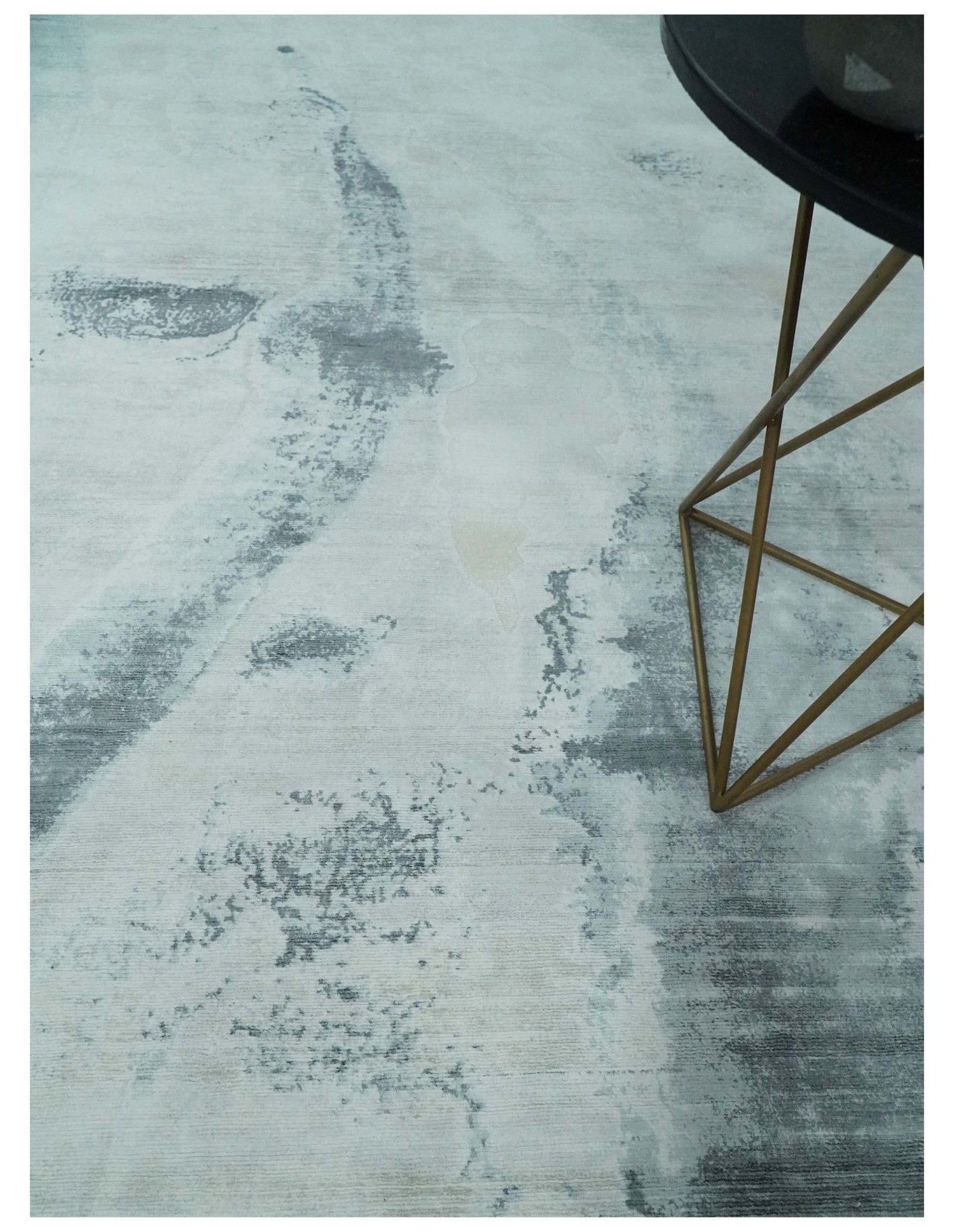 8x10 Silver, Ivory and Charcoal Modern Abstract Hand Loomed Art Silk Area Rug