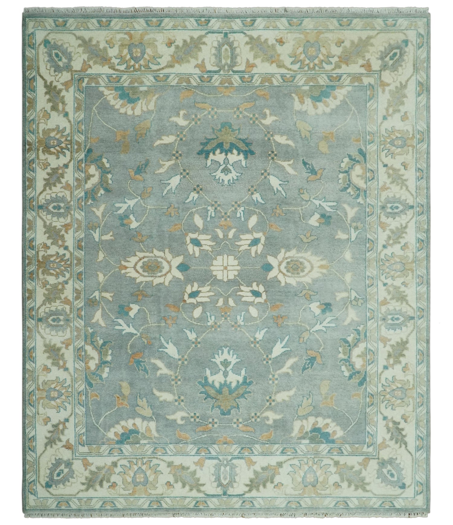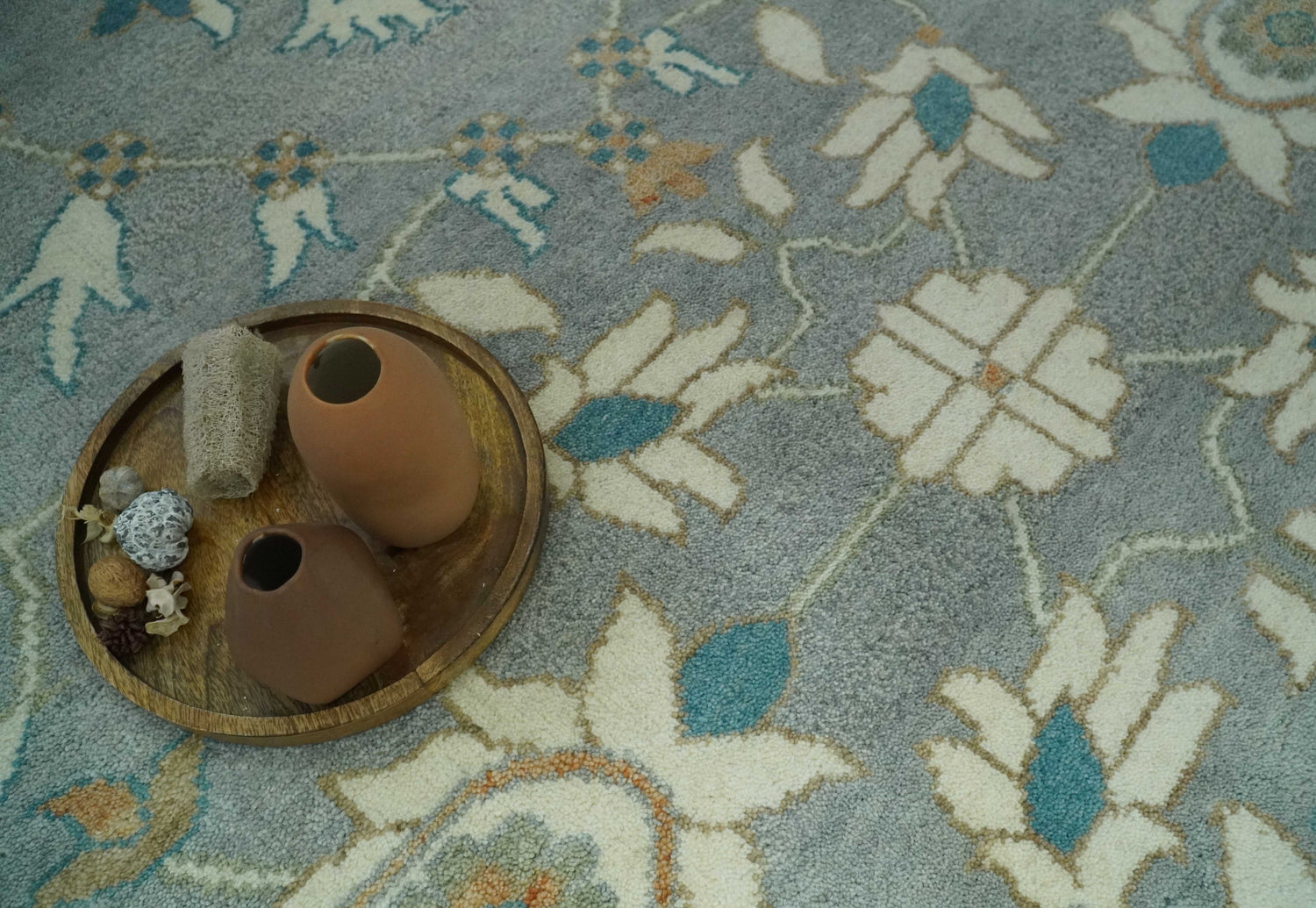8x10 Traditional Floral Silver and Ivory Hand Knotted wool area rug