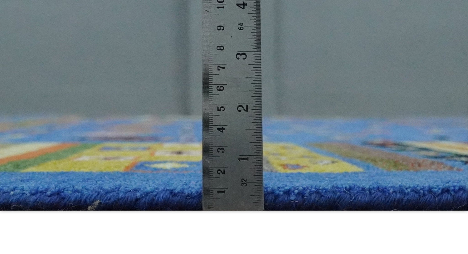 8x10 Tribal Gabbeh Blue, Black, Green and Rust Hand knotted Traditional Wool Area Rug - 8x10 is backordered and will ship as soon as it is back in stock.