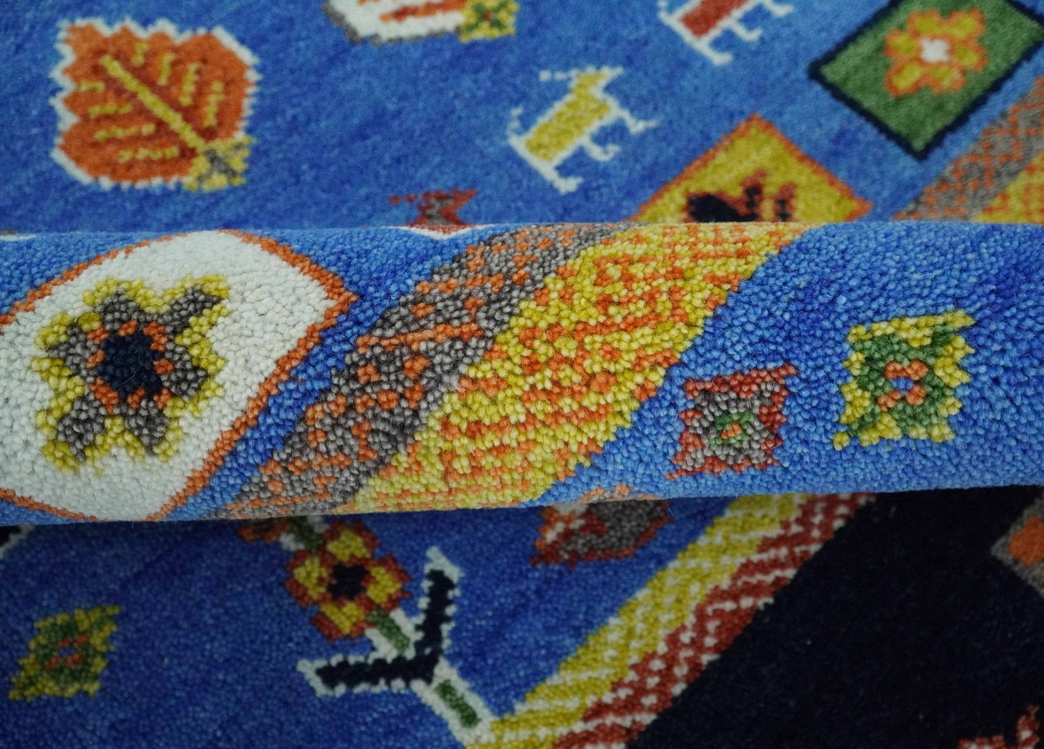 8x10 Tribal Gabbeh Blue, Black, Green and Rust Hand knotted Traditional Wool Area Rug