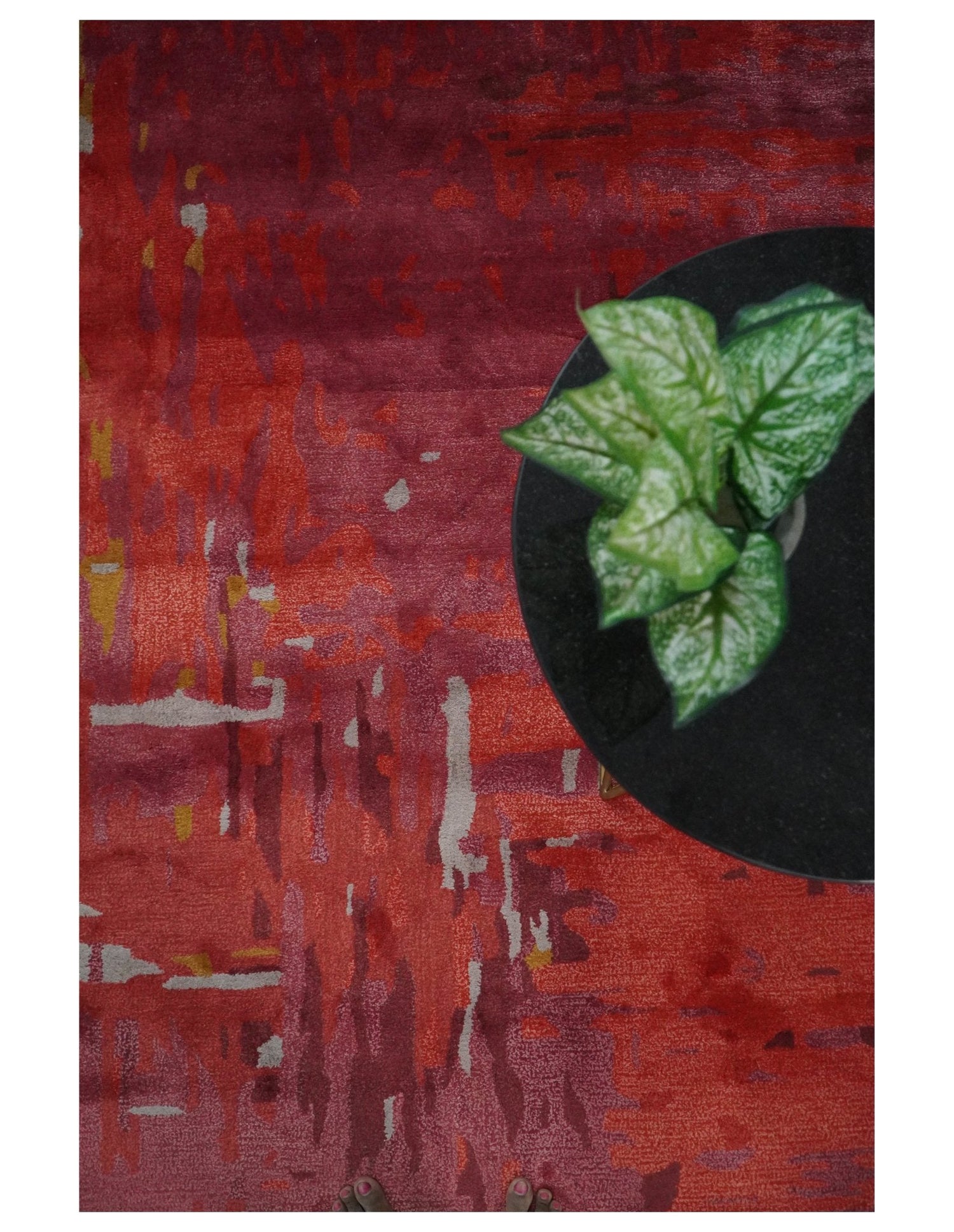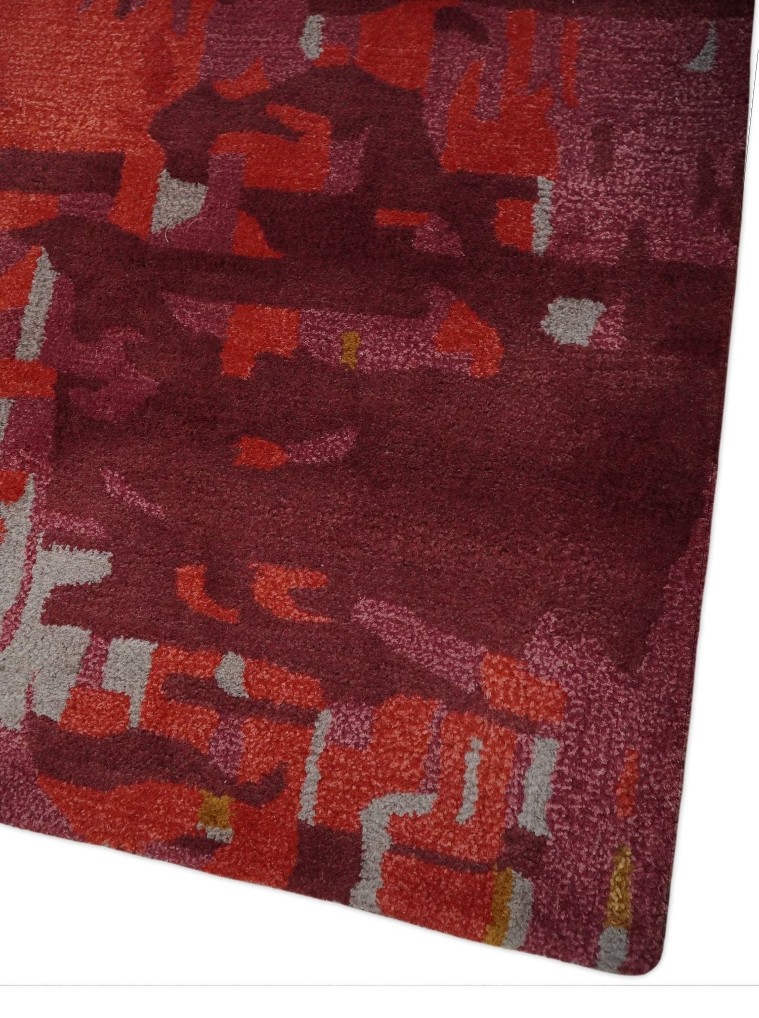 8x11 Red, Rust and Silver Modern Abstract Handmade Wool and Art Silk Area Rug | BAN1 is backordered and will ship as soon as it is back in stock.