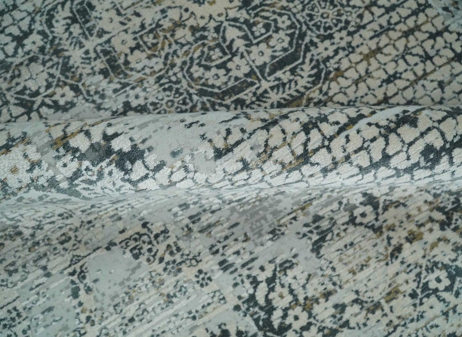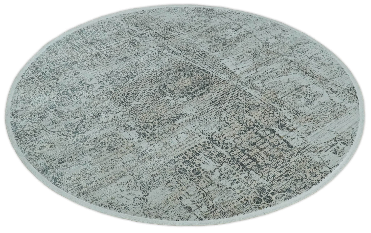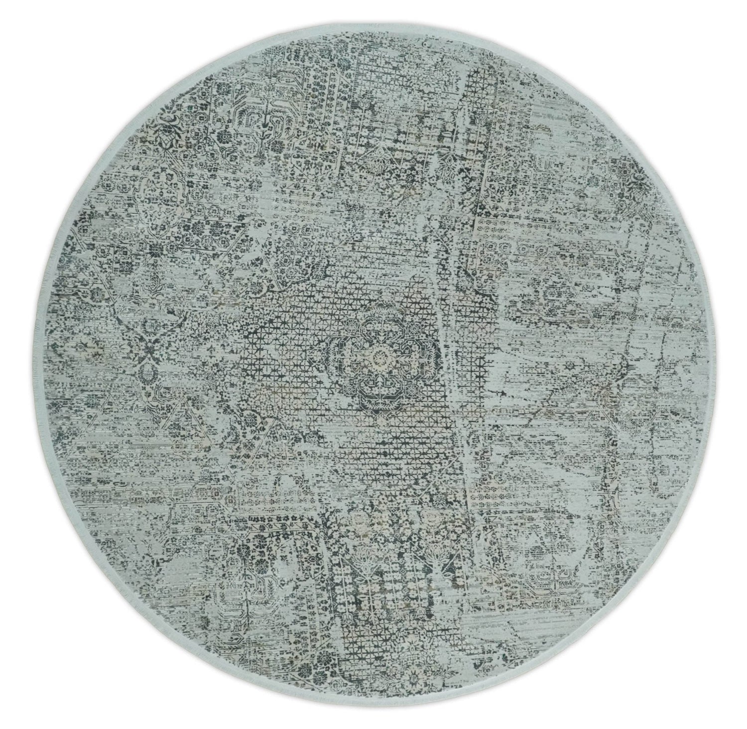 8x8 Round Beige, Gray and Charcoal Antique Finish, Vintage look, Art Silk Area Rug, Living Room Rug | TRDMM8