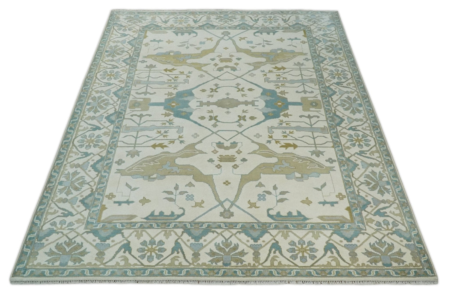 9.3x12.1 Hand Knotted Oriental Oushak Ivory, Brown and Beige Wool Area Rug - 9.3x12.1 is backordered and will ship as soon as it is back in stock.