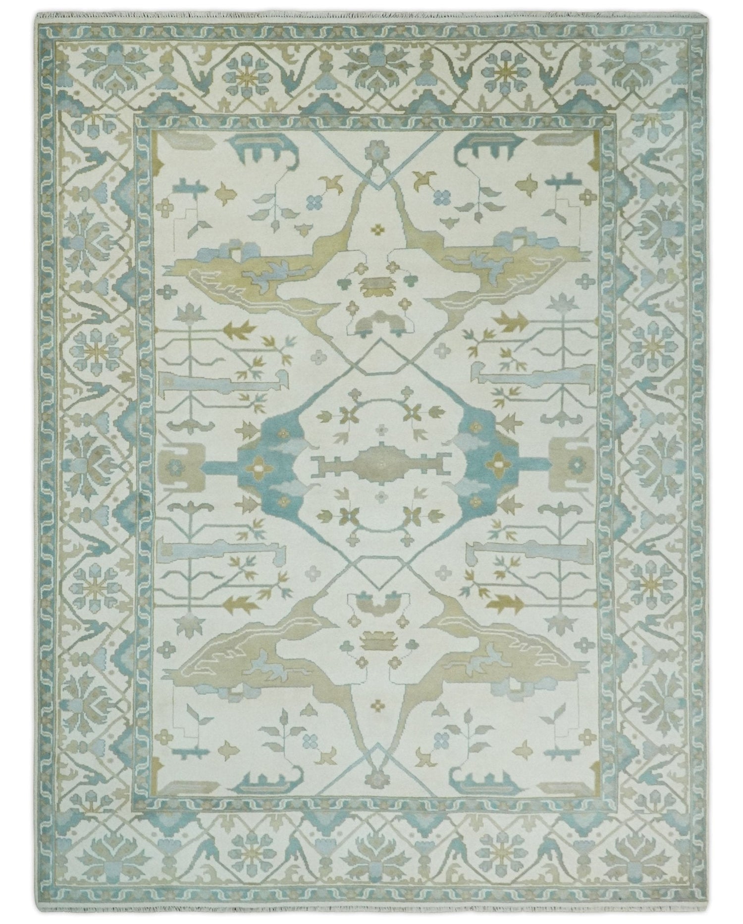9.3x12.1 Hand Knotted Oriental Oushak Ivory, Brown and Beige Wool Area Rug