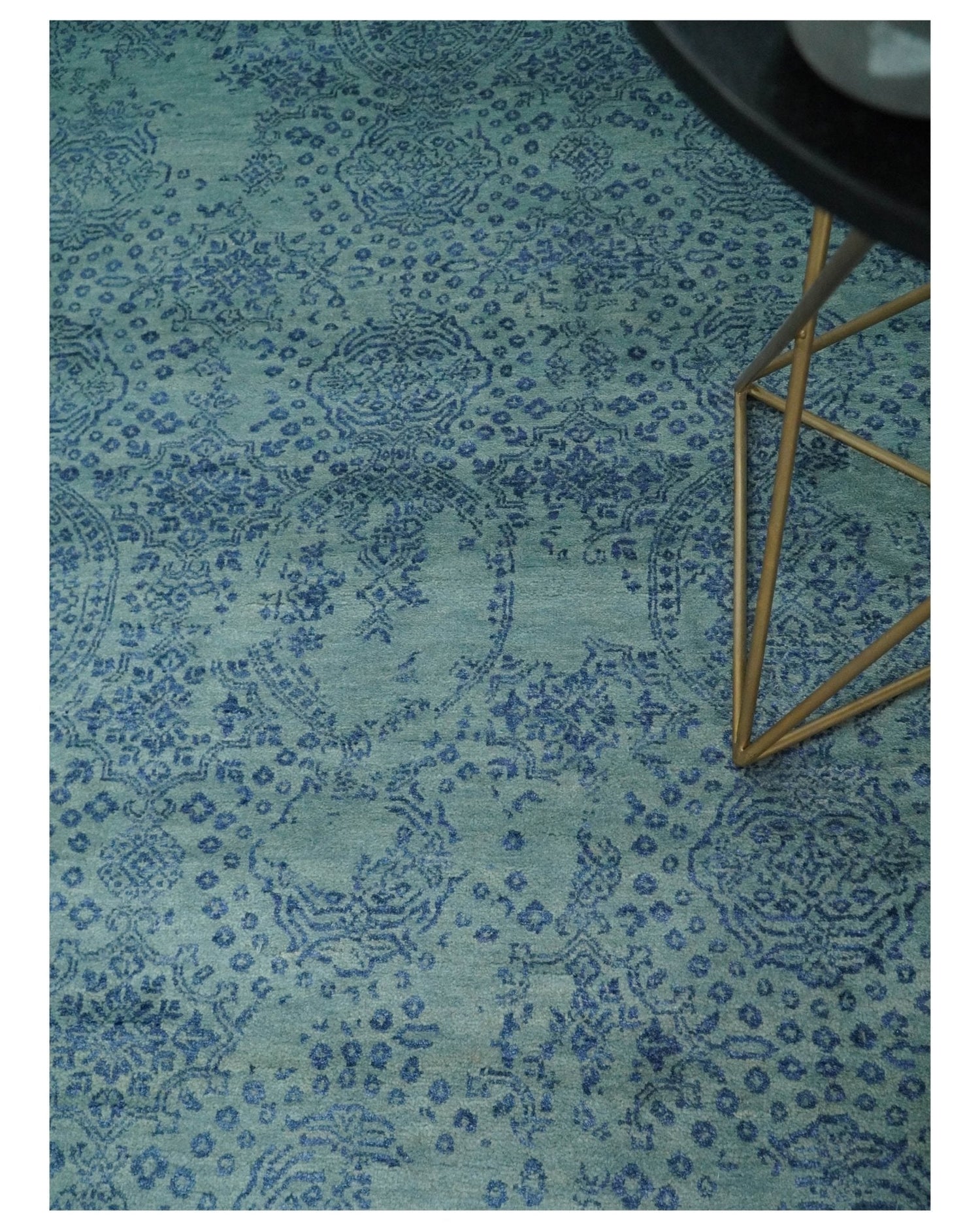 9x12 Fine Hand Knotted Blue and Teal Traditional Vintage Persian Style Antique Wool Rug | AGR33