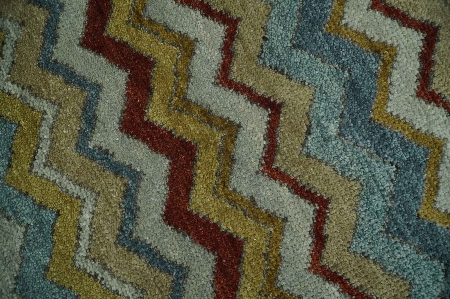 9x12 Gray, Maroon, Ivory and Mustard Stripes Pattern Hand knotted wool Area Rug