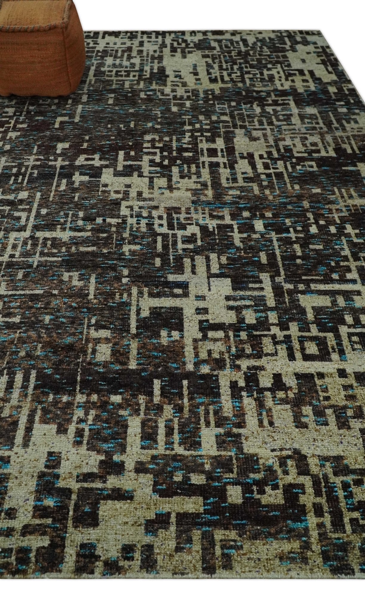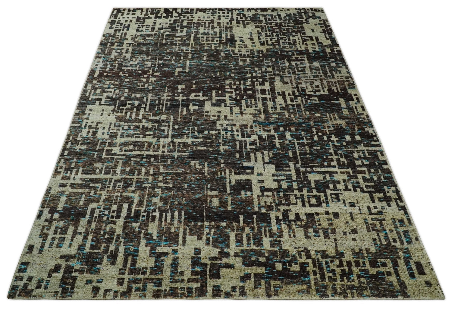 9x12 Hand Knotted Beige and Brown Modern Abstract Contemporary Recycled Silk Area Rug | OP36