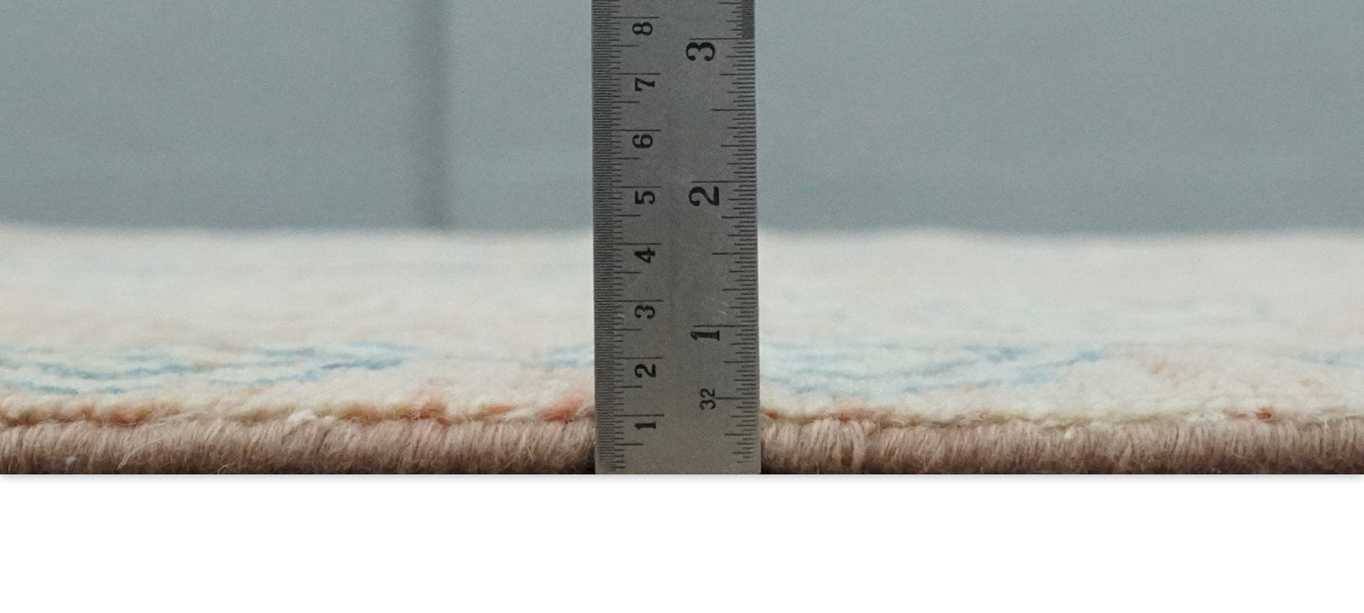 This Hand-Knotted Rug has been Made with Handspun Wool. The beautiful colors of the rug carry a legacy of the Heriz rug. The traditional inspired design of the rug completes your space without making it look busy. Hand-Knotted rugs are durable and can last for decades if treated right.