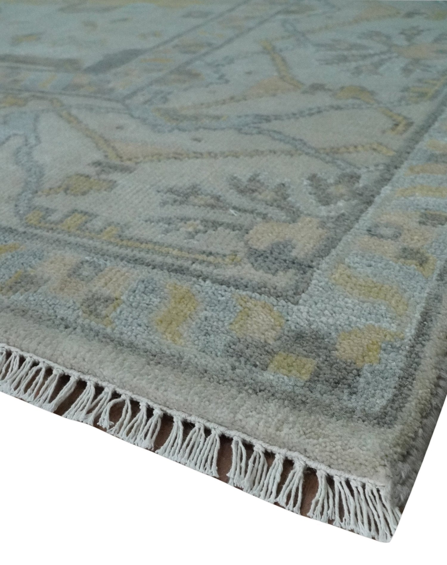 9x12 Hand Knotted Oriental Oushak Ivory, Charcoal and Yellow Wool Area Rug - 9x12 is backordered and will ship as soon as it is back in stock.
