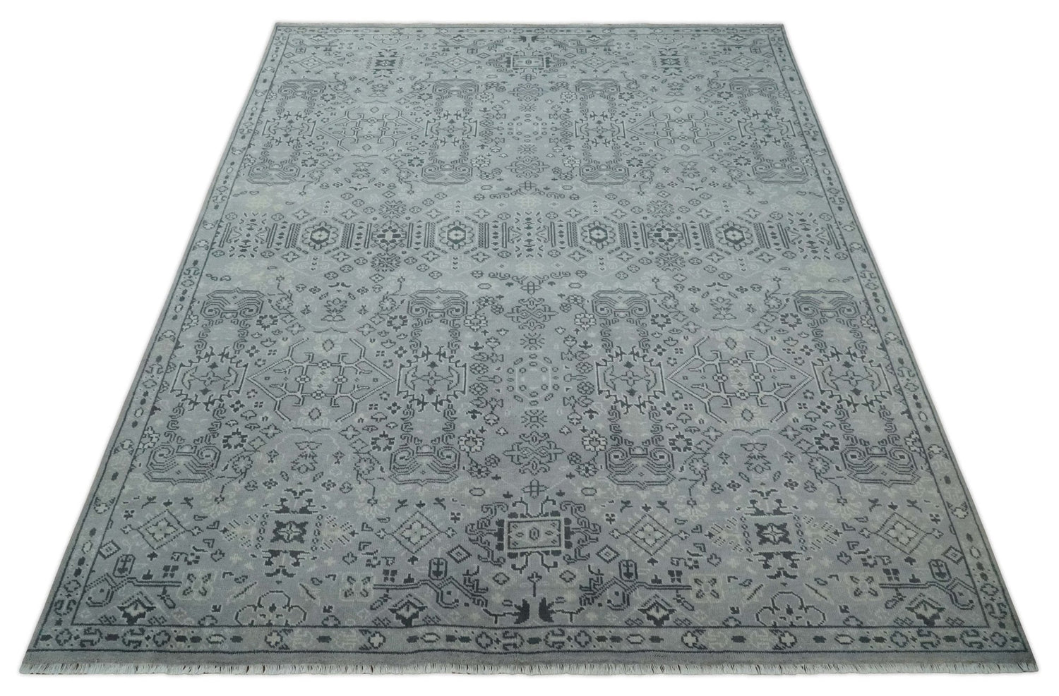 9x12 Hand Knotted Silver, Ivory and Charcoal Traditional Antique Style Wool Rug