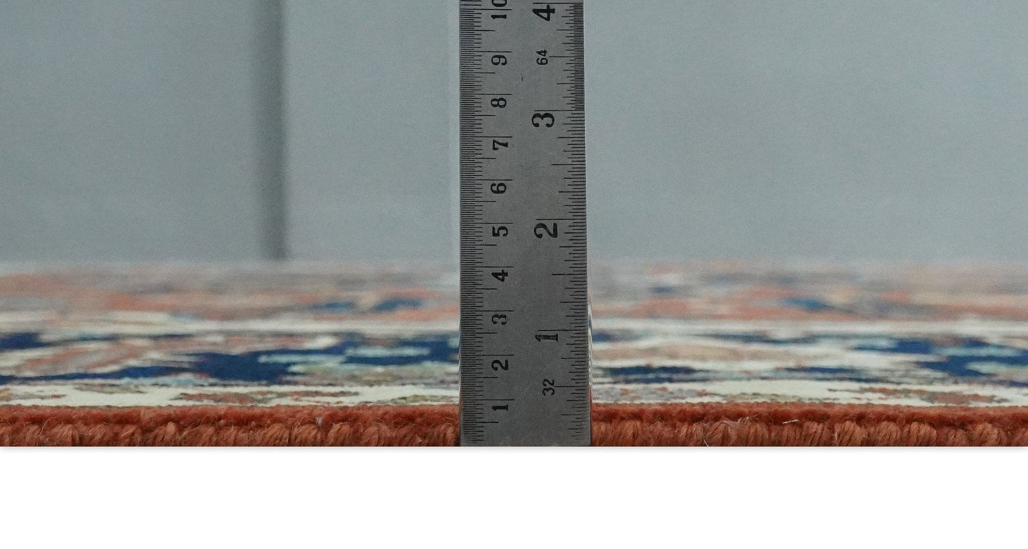 Heriz rugs have been made for centuries and carry a tradition and art. This specific rug is made in India, in the city of Bhadohi. Bhadohi is one of the biggest rug manufacturing cities. Carpet weaving in the region dates back to the 16th century during the reign of Akbar. The skilled artisans of Bhadohi have been carrying the tradition of rug-making for centuries.