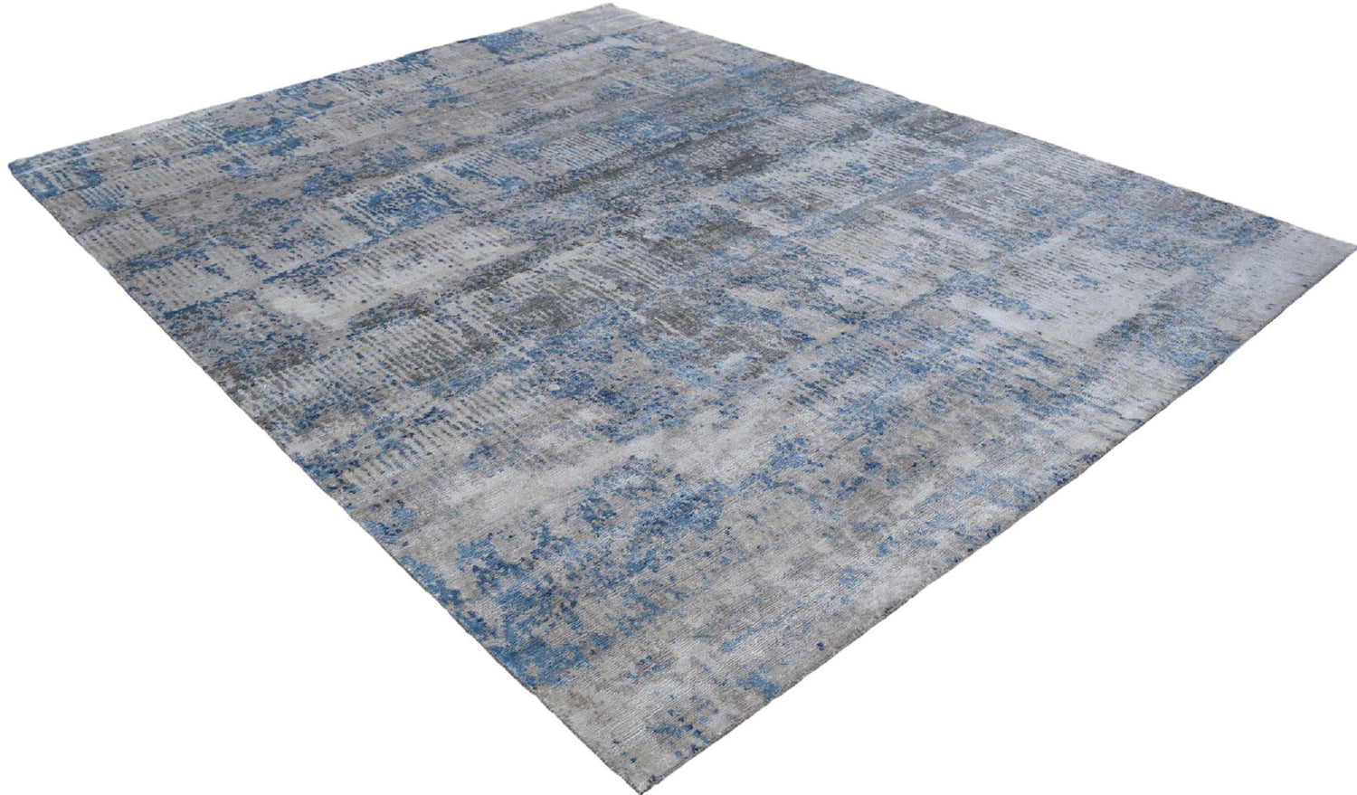 Abstract Handmade Silver and Blue Bamboo Silk 8x10 Area Rug | TRD1689810 is backordered and will ship as soon as it is back in stock.