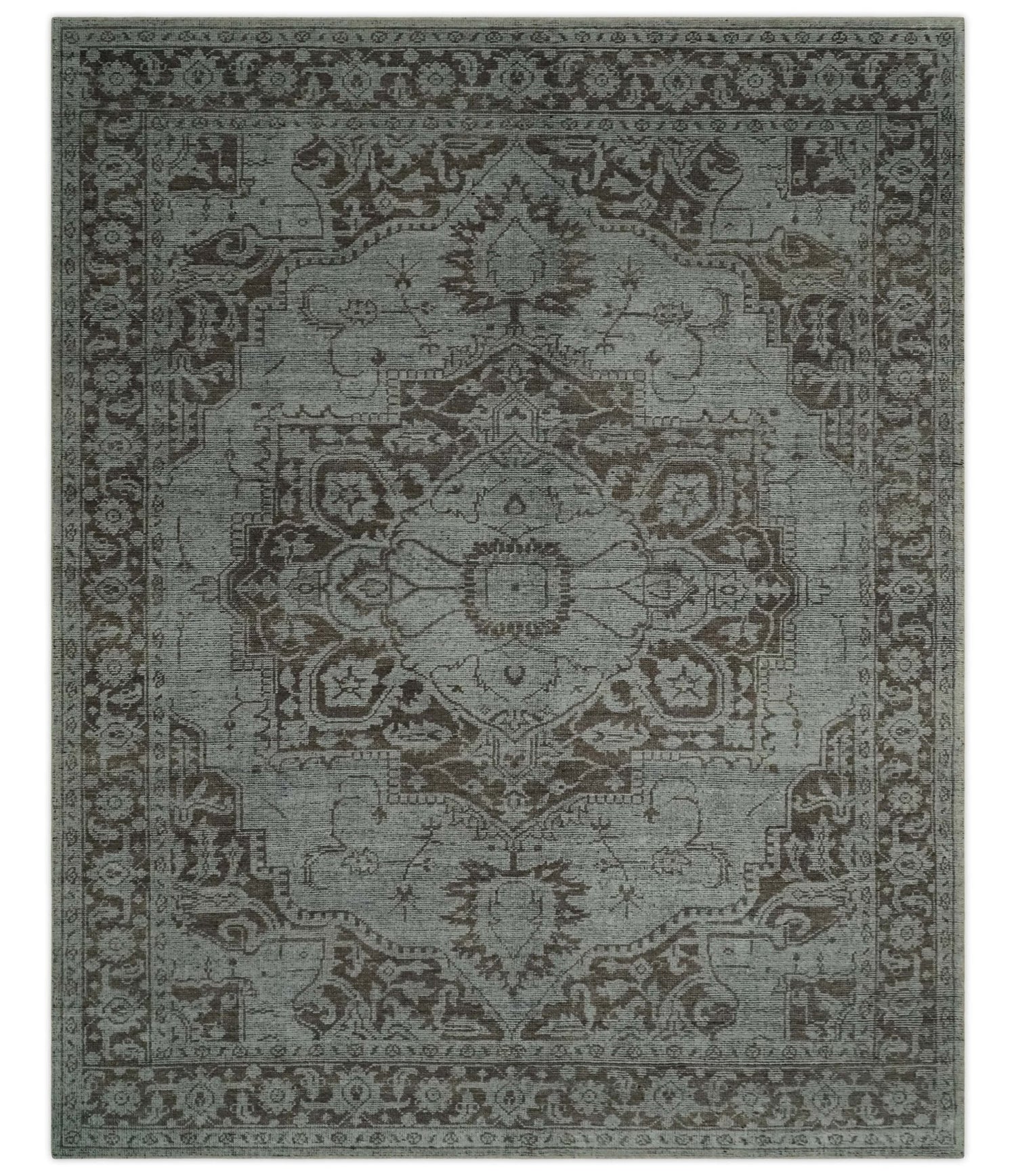 Antique Design Traditional Heriz Medallion Silver, Charcoal and Brown Hand Knotted 8x10 wool area Rug