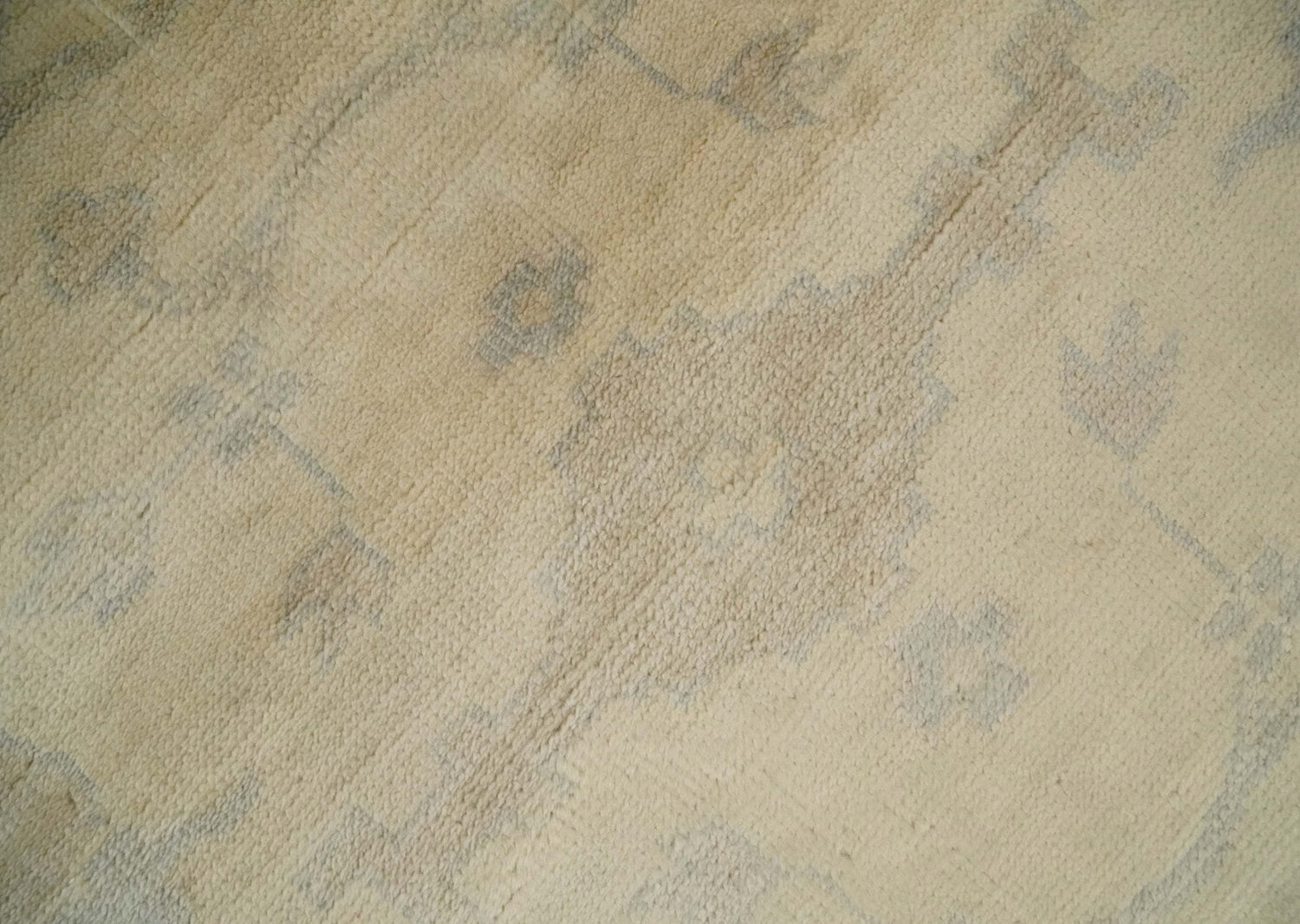 The Oriental Oushak design with a classic color combination of Brown and Beige gives it an antique look. The rug is made with fine wool. It is a perfect pick to give your interior a classic feel.