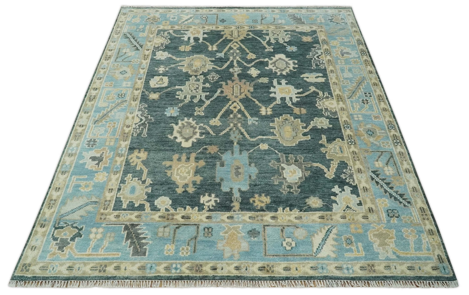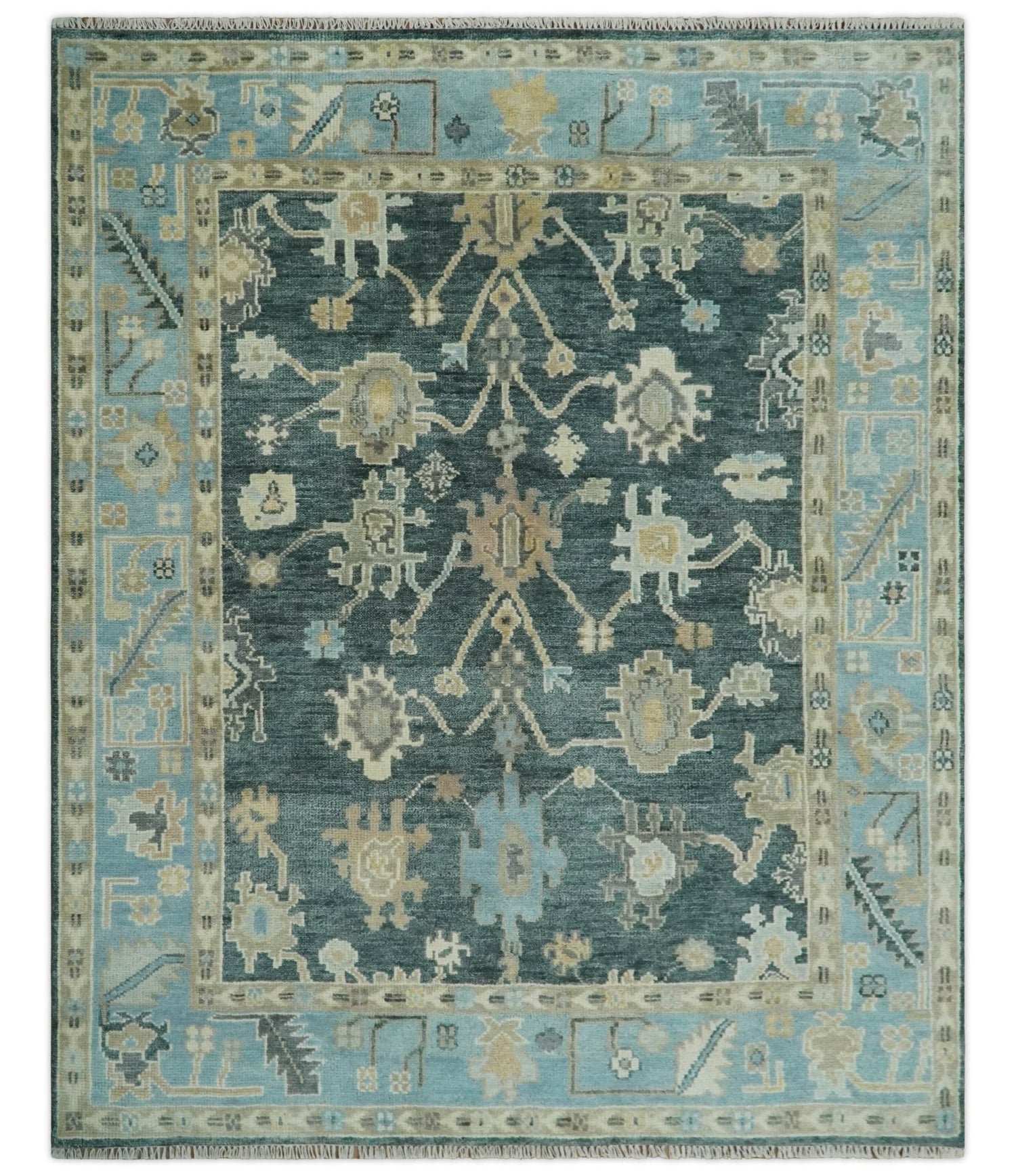 Antique look Green, Aqua and Beige Hand Knotted Traditional Oushak 8x10 wool area Rug - 8x10 is backordered and will ship as soon as it is back in stock.