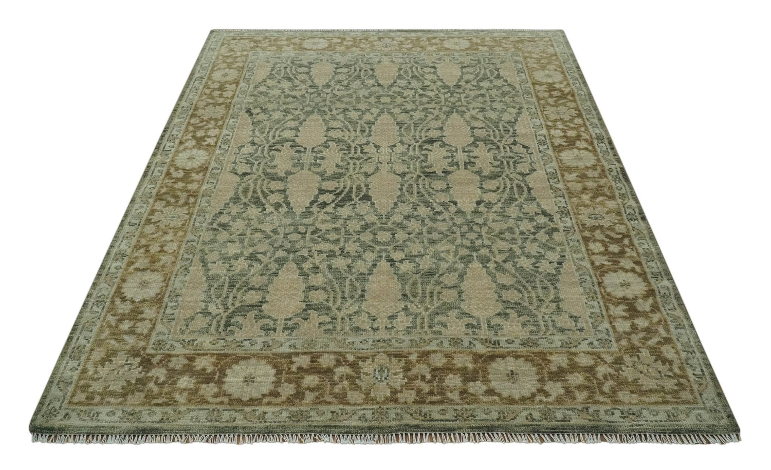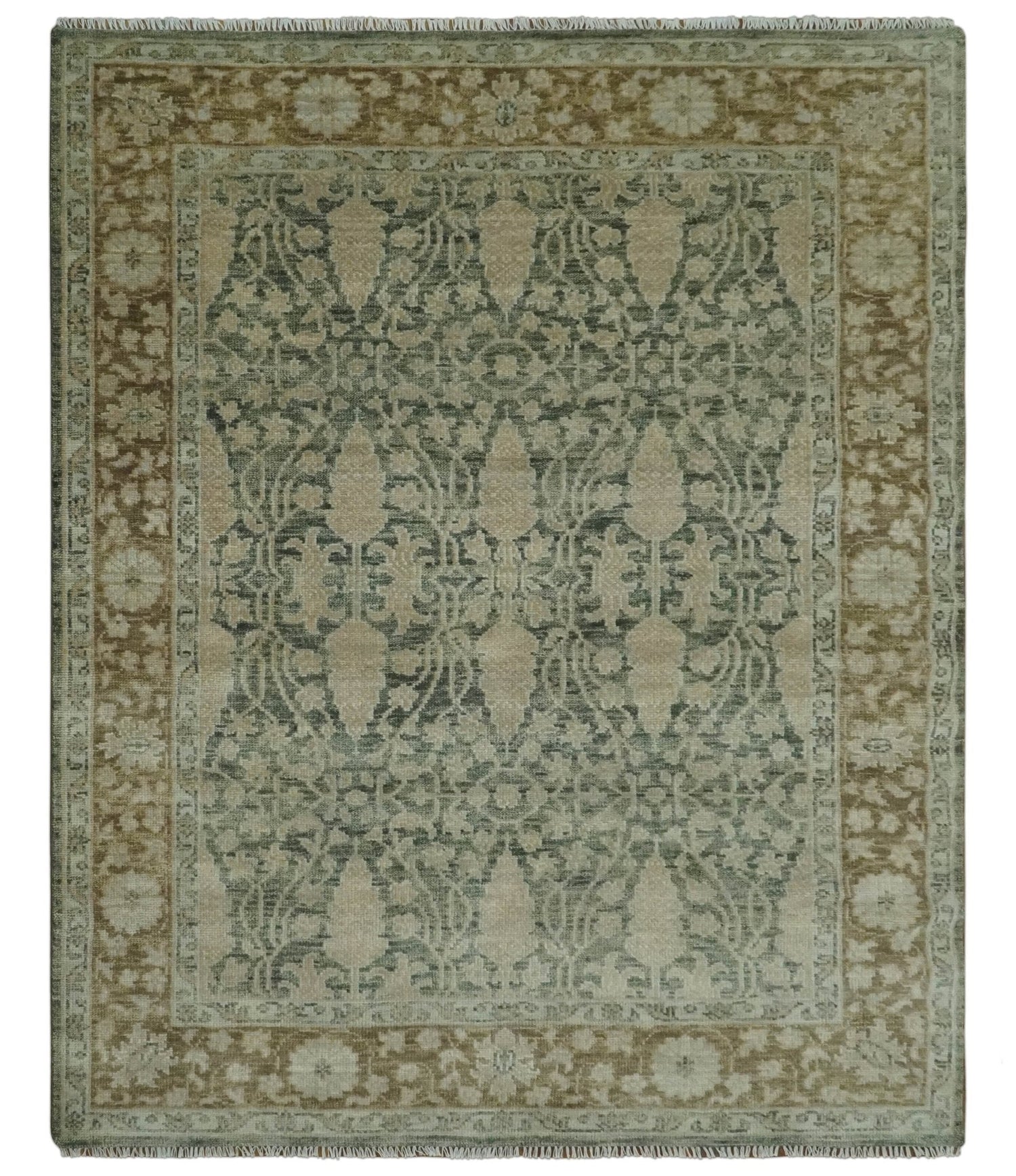 Antique look vintage style 8x10 Green, Beige and Brown traditional Hand Knotted wool rug
