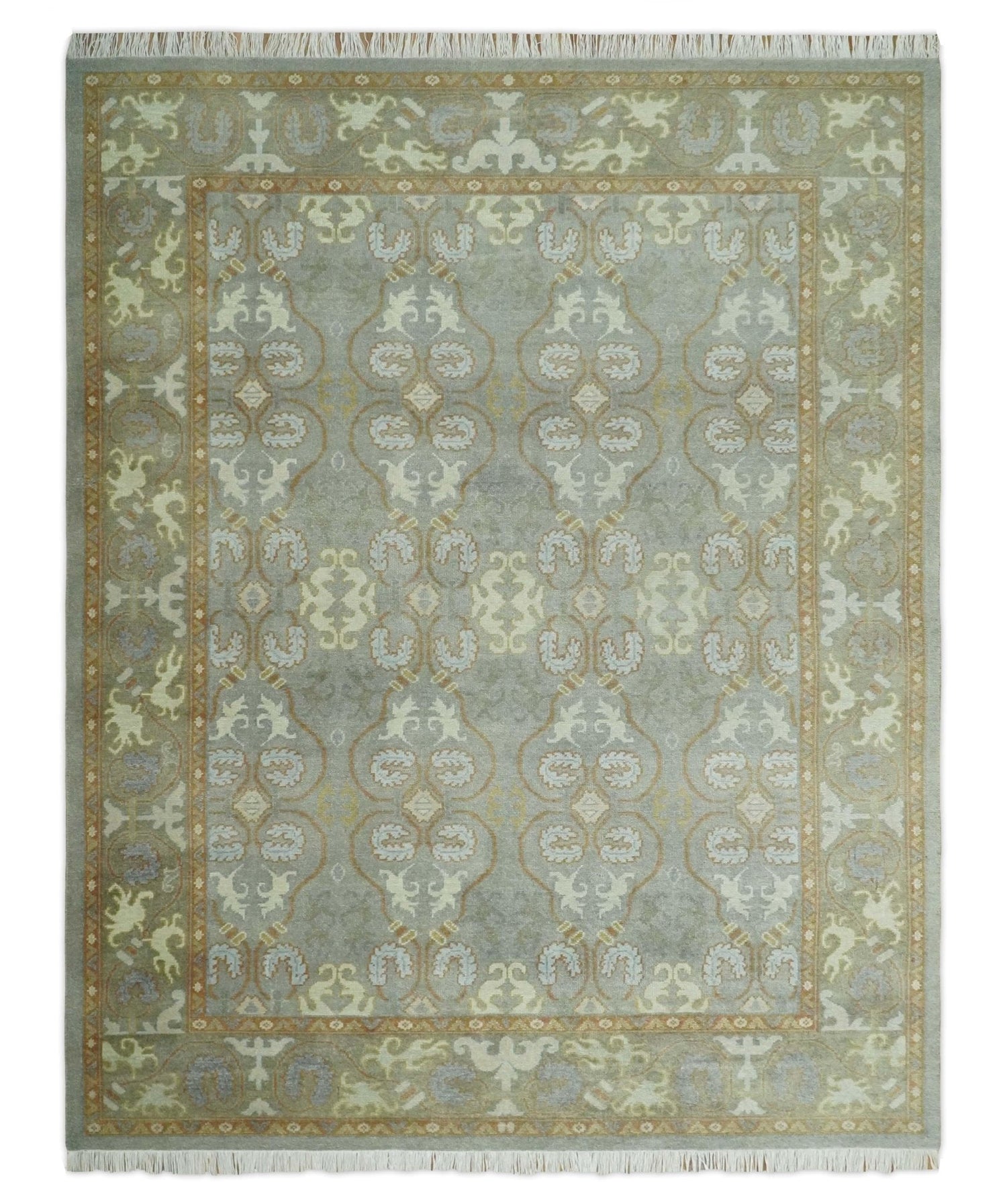 Antique Persian 8x10 Hand Knotted Gray and Beige Traditional Persian Oushak Wool Rug | AC1810